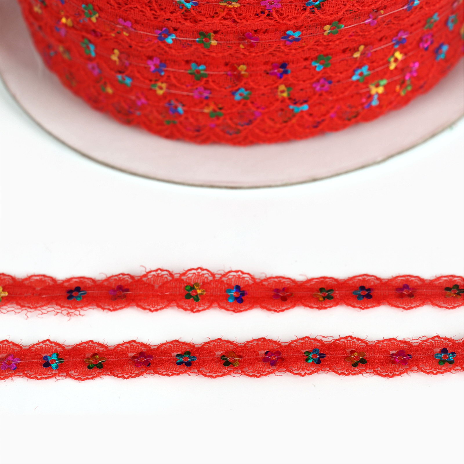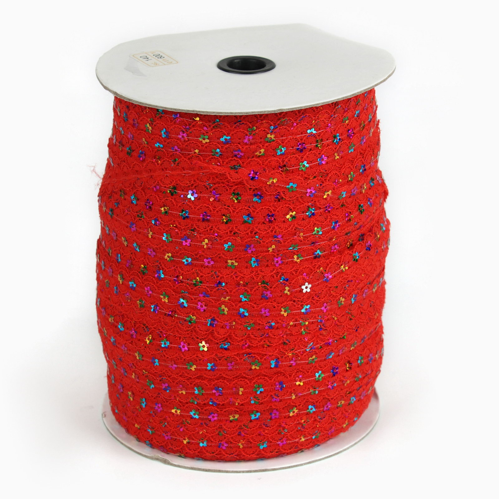 Тесьма гипюровая красная с пайетками, 1.3 см, в бобине 548 м, Страна Карнавалия, Китай
