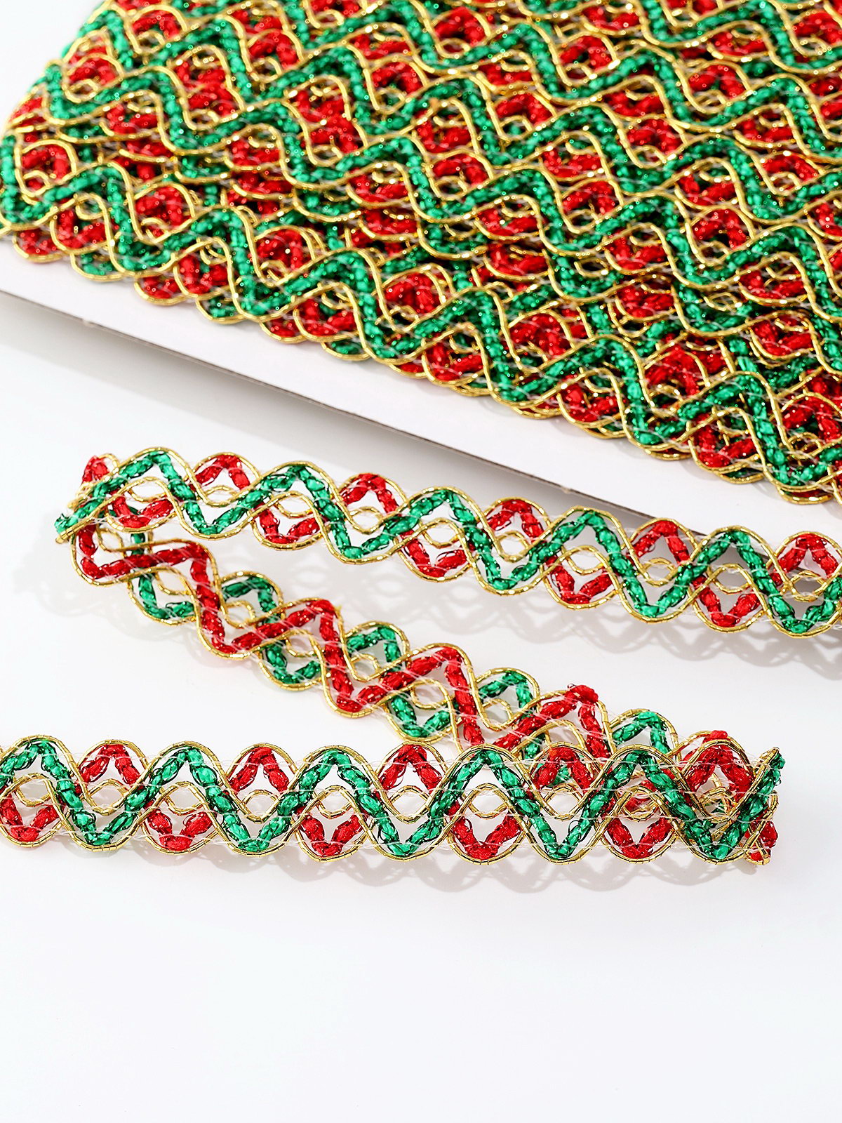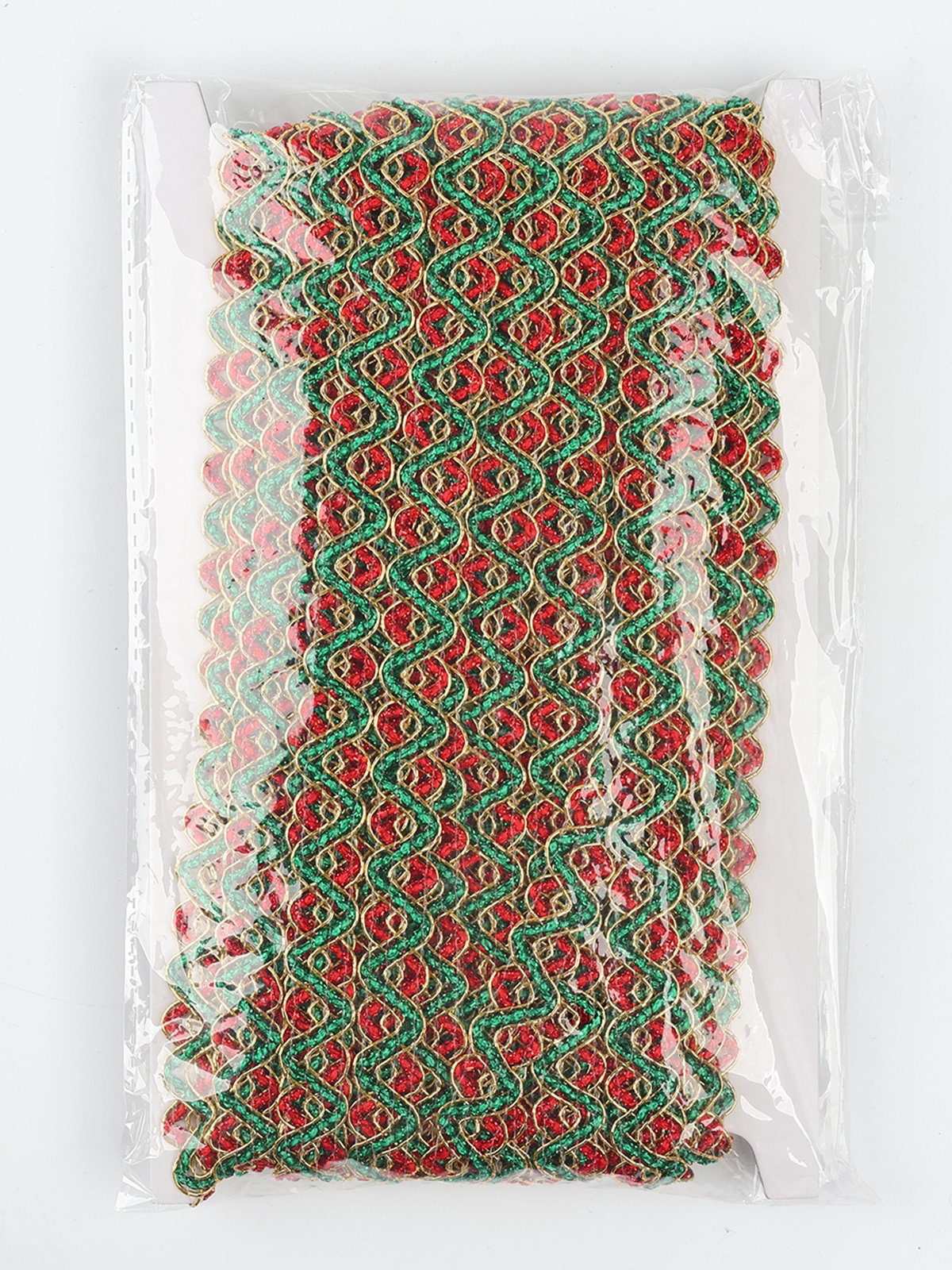 Тесьма Змейка красно-зелено-золотая 1.5 см намотка 25 метров, Страна Карнавалия, Китай