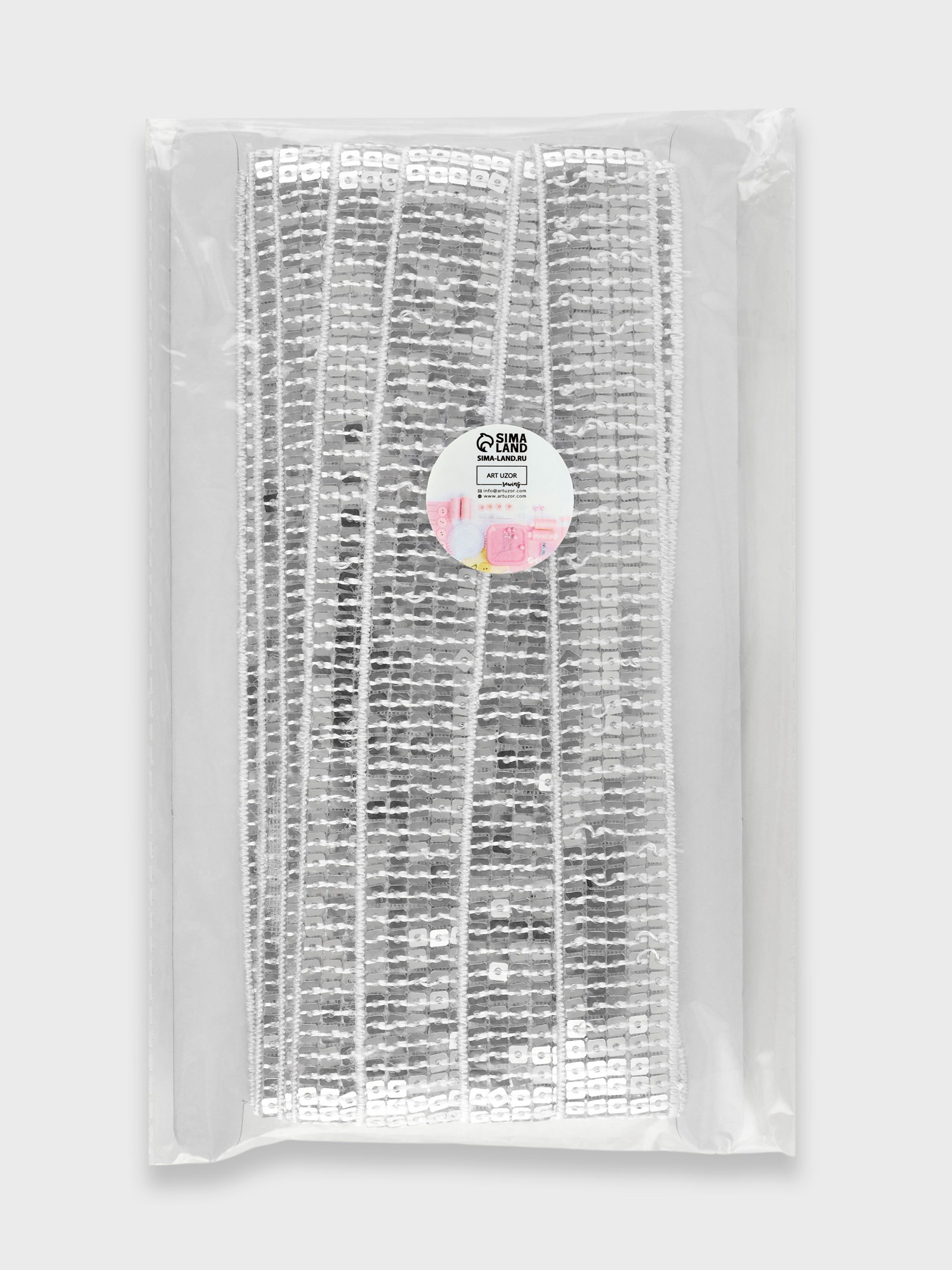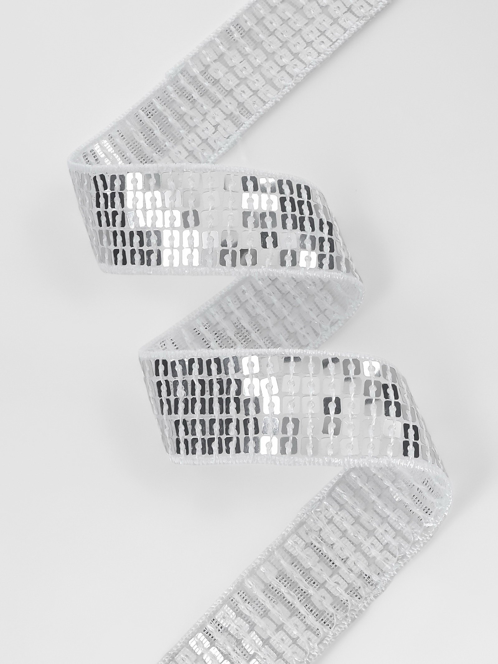 Лента декоративная с квадратными пайетками, 2.5 см, 9+-0.5 м, цвет серебряный, 6x20x5 см., Арт Узор, Китай