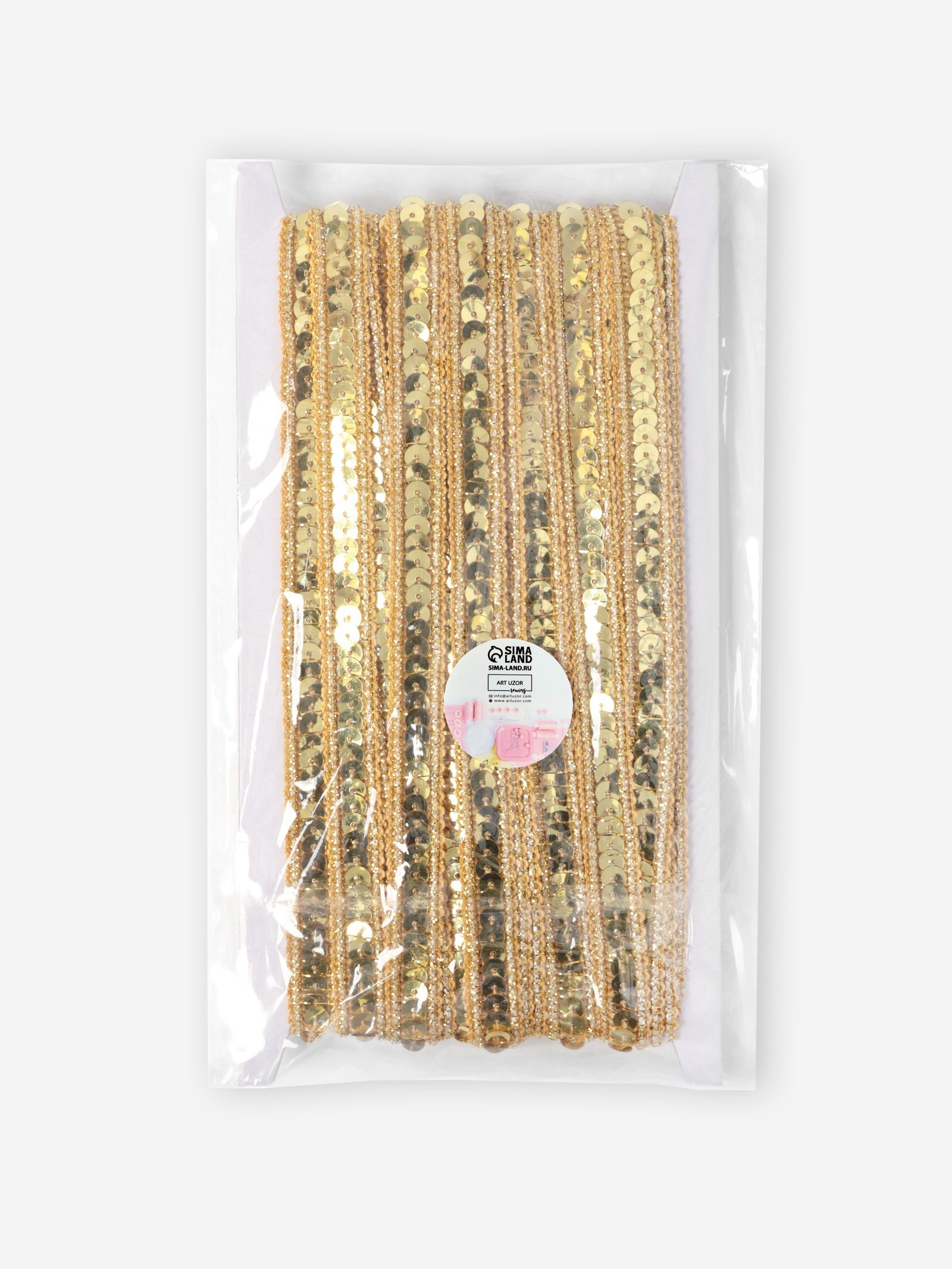 Тесьма декоративная с пайетками, 12 мм, 9+-0.5 м, цвет золотой, 8.5x17x2 см., Арт Узор, Китай