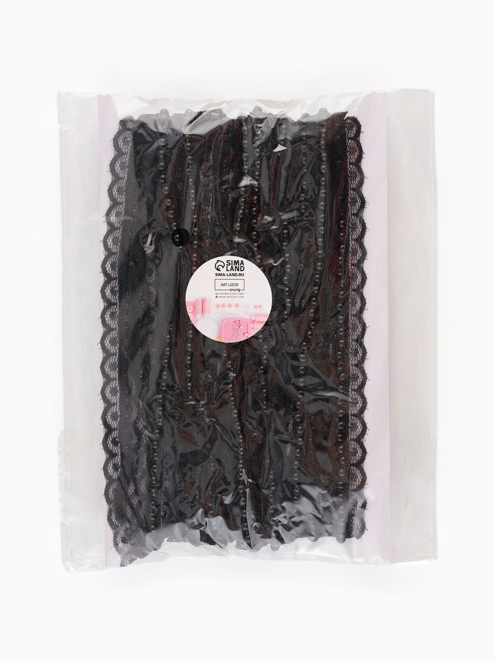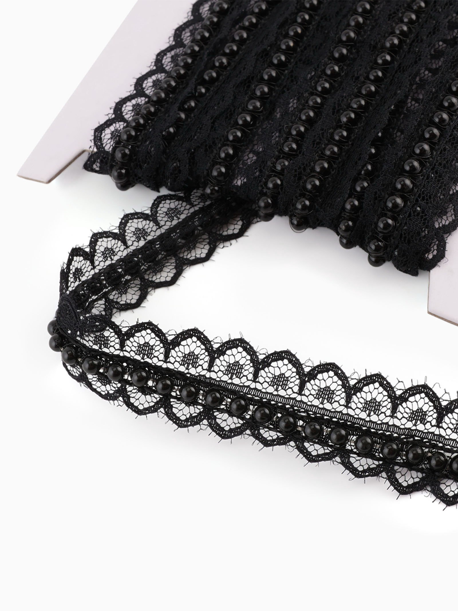 Рюш кружевной, с бусинами, 17 мм, 4.5+-0.5 м, чёрный, 13x22x2 см., Арт Узор, Китай