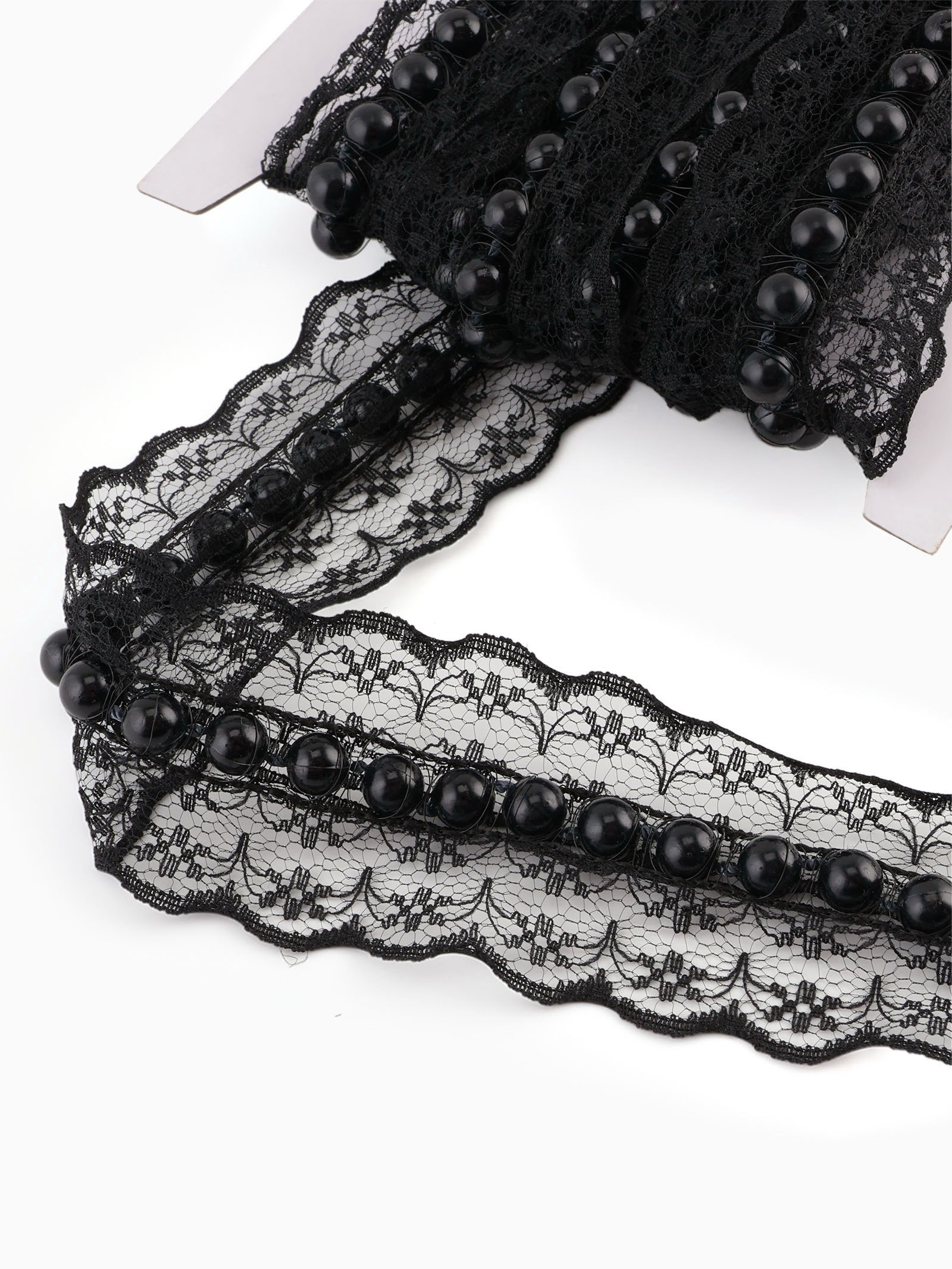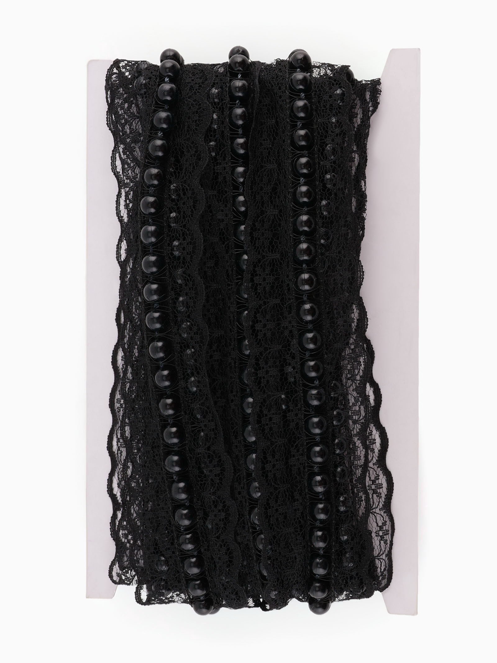 Рюш кружевной, с бусинами, 40 мм, 4.5+-0.5 м, чёрный, 13x22x2 см., Арт Узор, Китай
