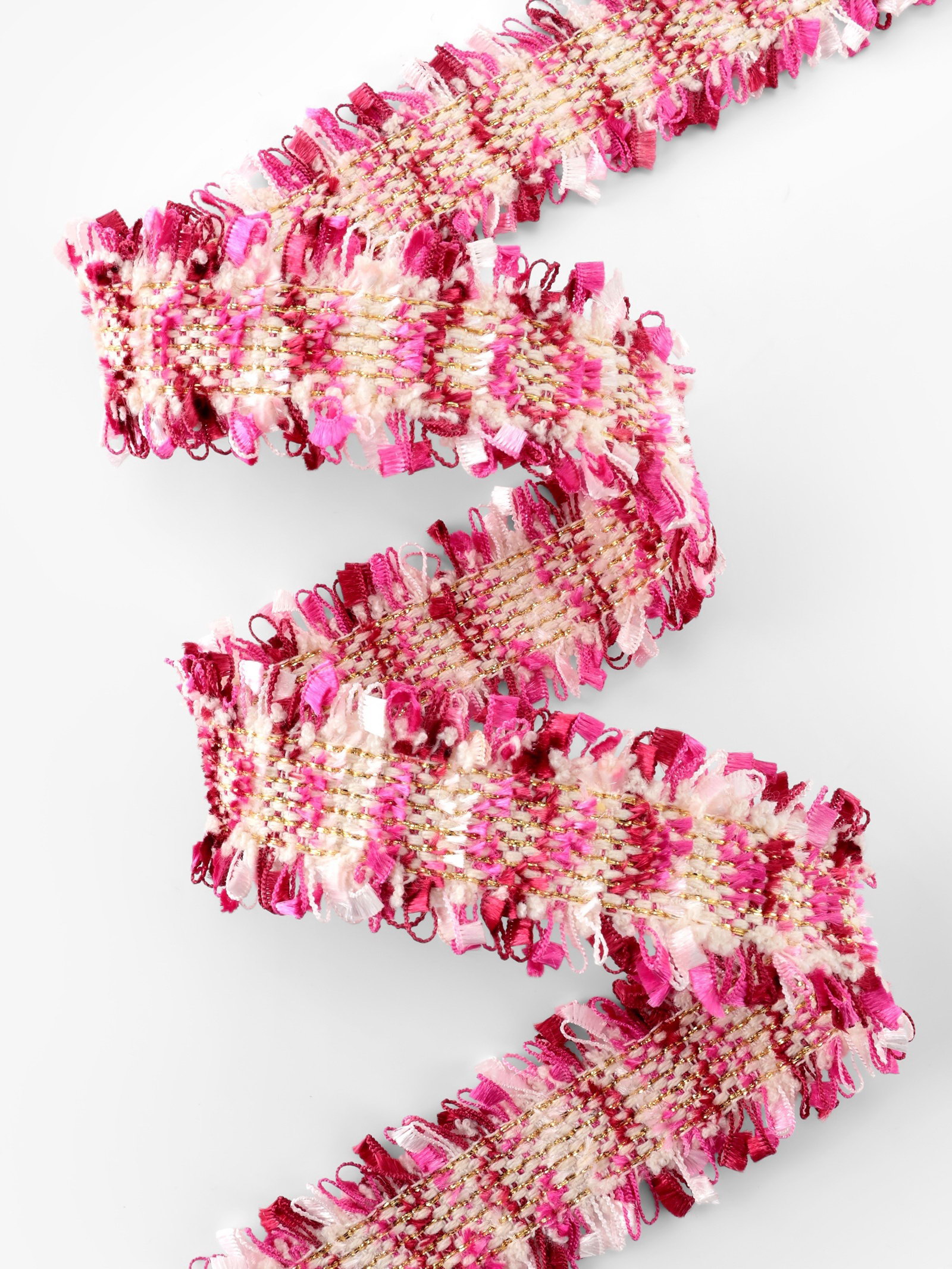 Тесьма декоративная "Твидовая", двусторонняя, 30 мм, 5+-0.5 м, фуксия, 12x18x1.5 см., Арт Узор, Китай