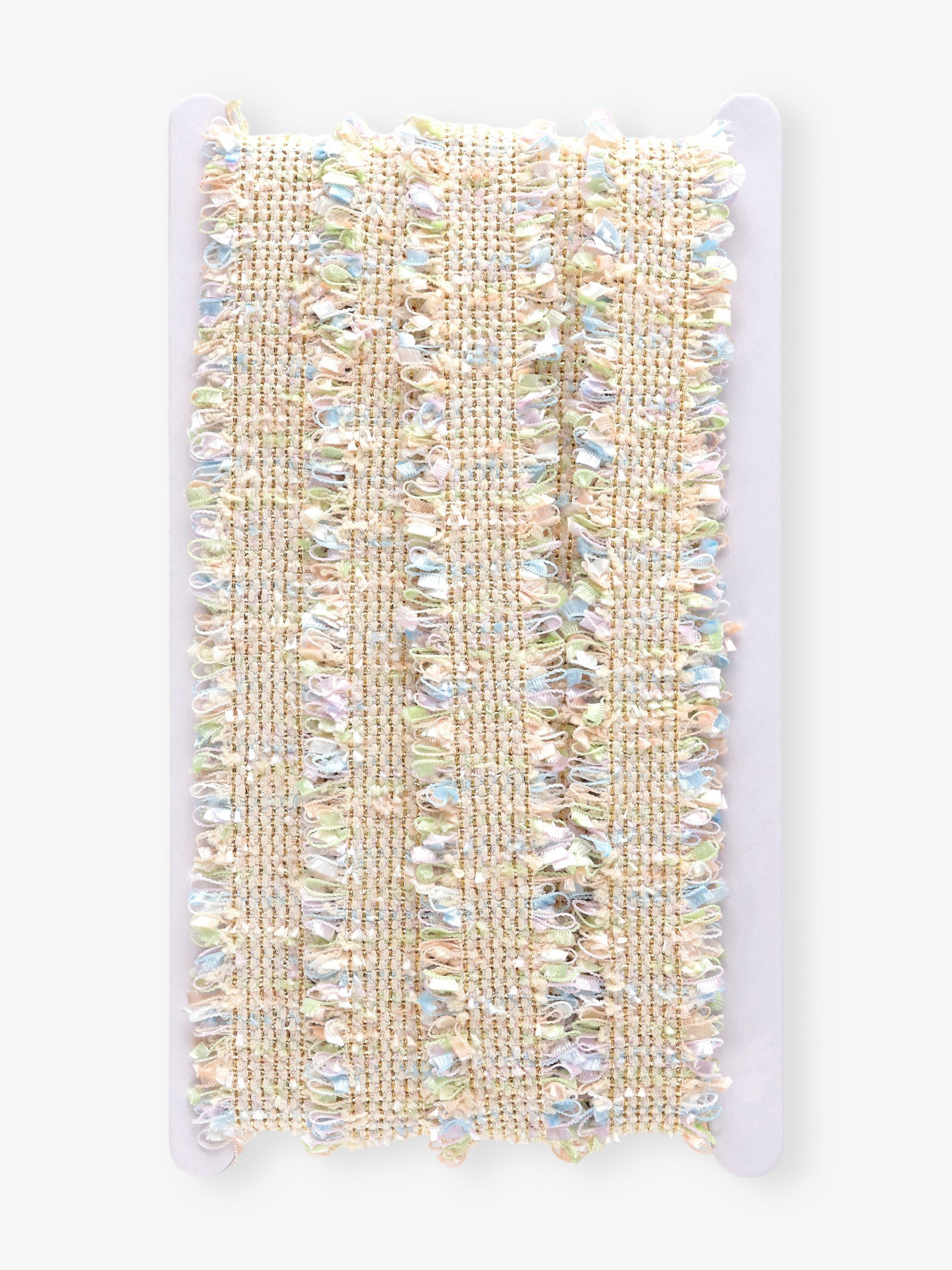 Тесьма декоративная "Твидовая", двусторонняя, 30 мм, 5+-0.5 м, светло-бежевая, 12x18x1.5 см., Арт Узор, Китай
