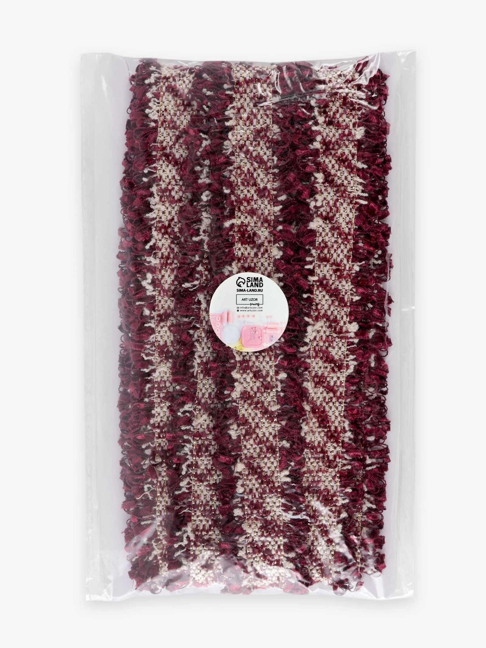Тесьма декоративная "Твидовая", двусторонняя, 30 мм, 5+-0.5 м, бордовая, 12x18x1.5 см., Арт Узор, Китай