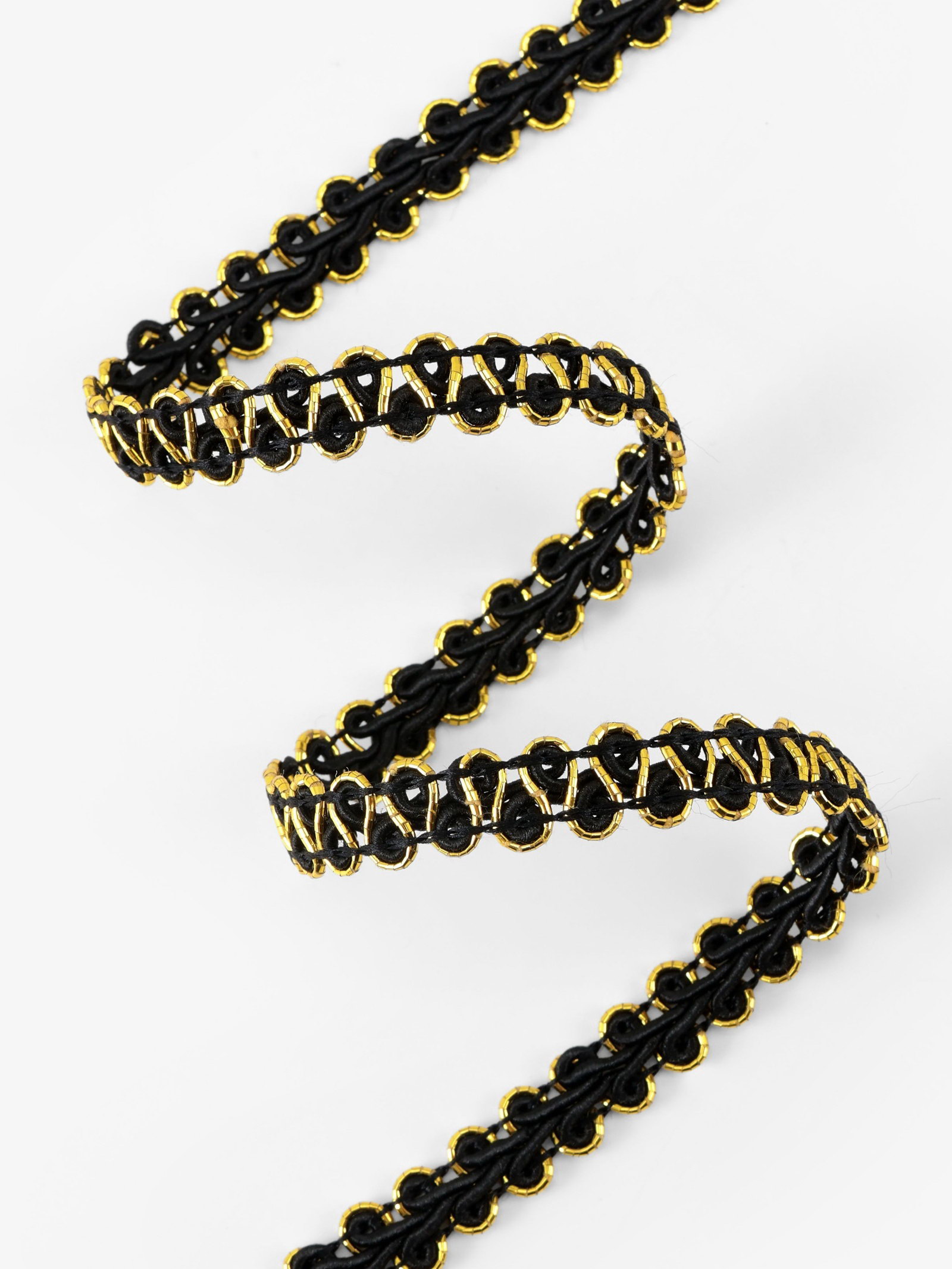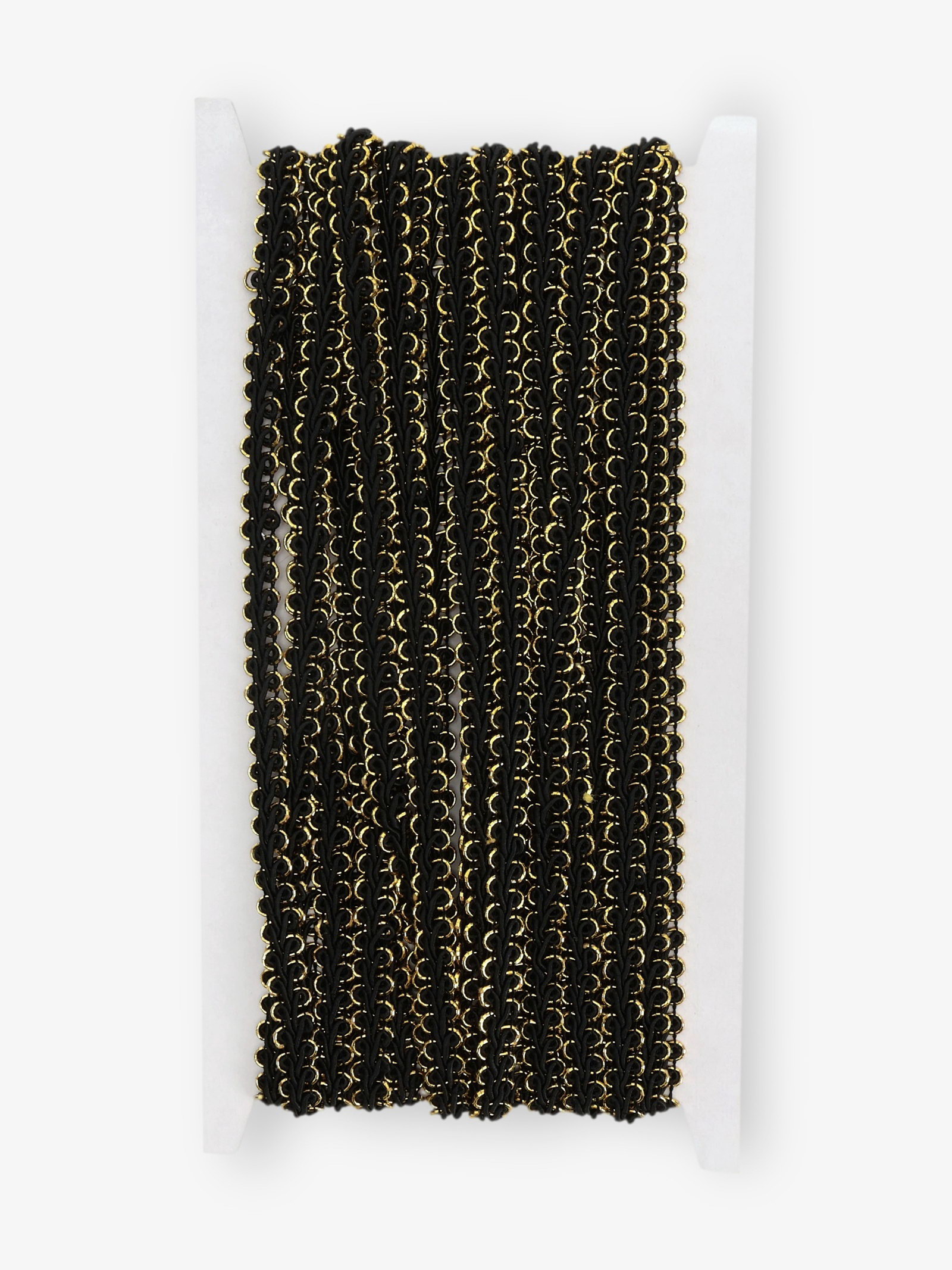 Тесьма декоративная "Шанель", 8 мм, 10+-1 м, цвет чёрный, золотой, 12x18x3 см., Арт Узор, Китай