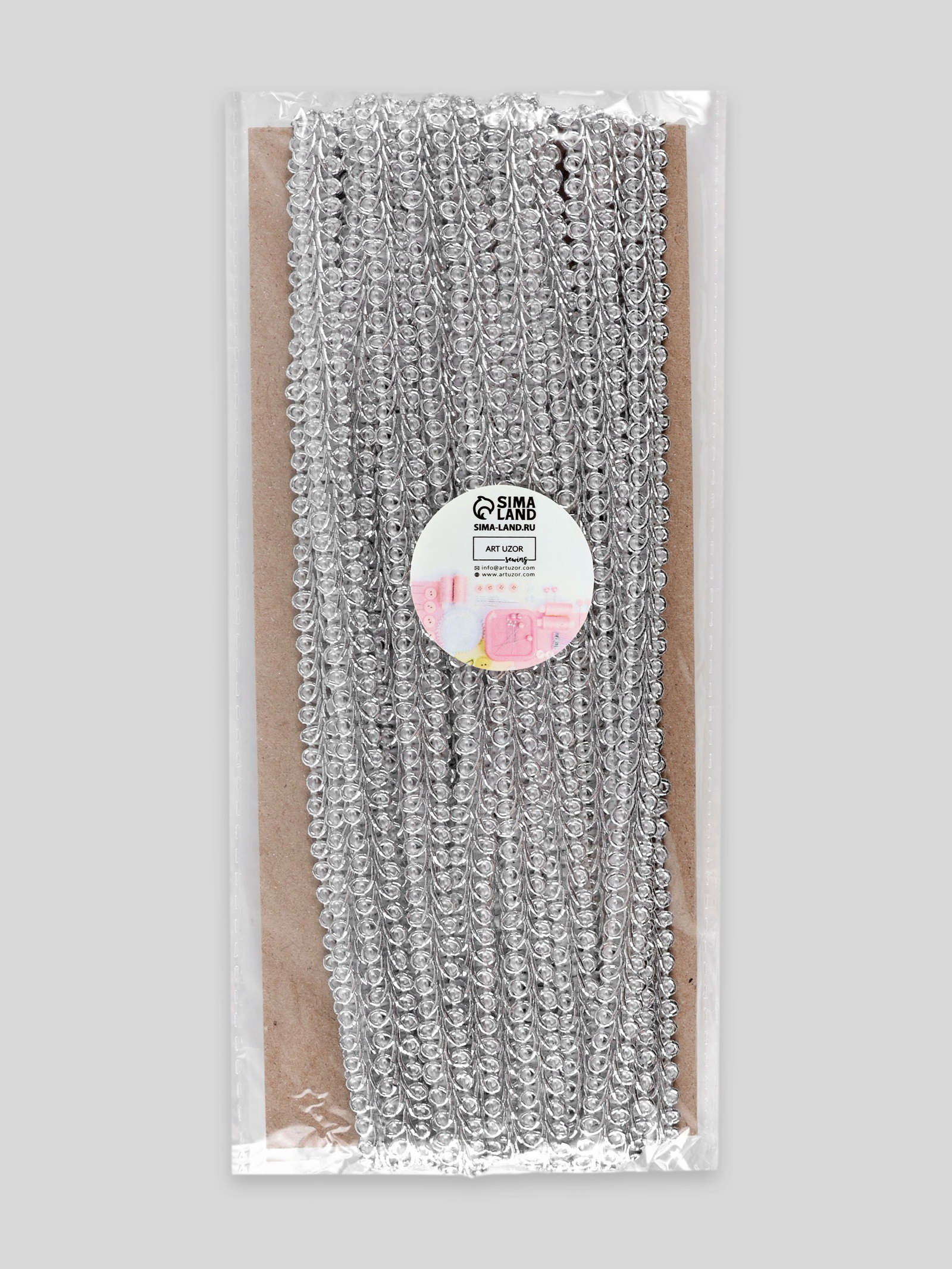 Тесьма декоративная "Шанель", 8 мм, 10+-1 м, цвет серебряный, 12x18x3 см., Арт Узор, Китай