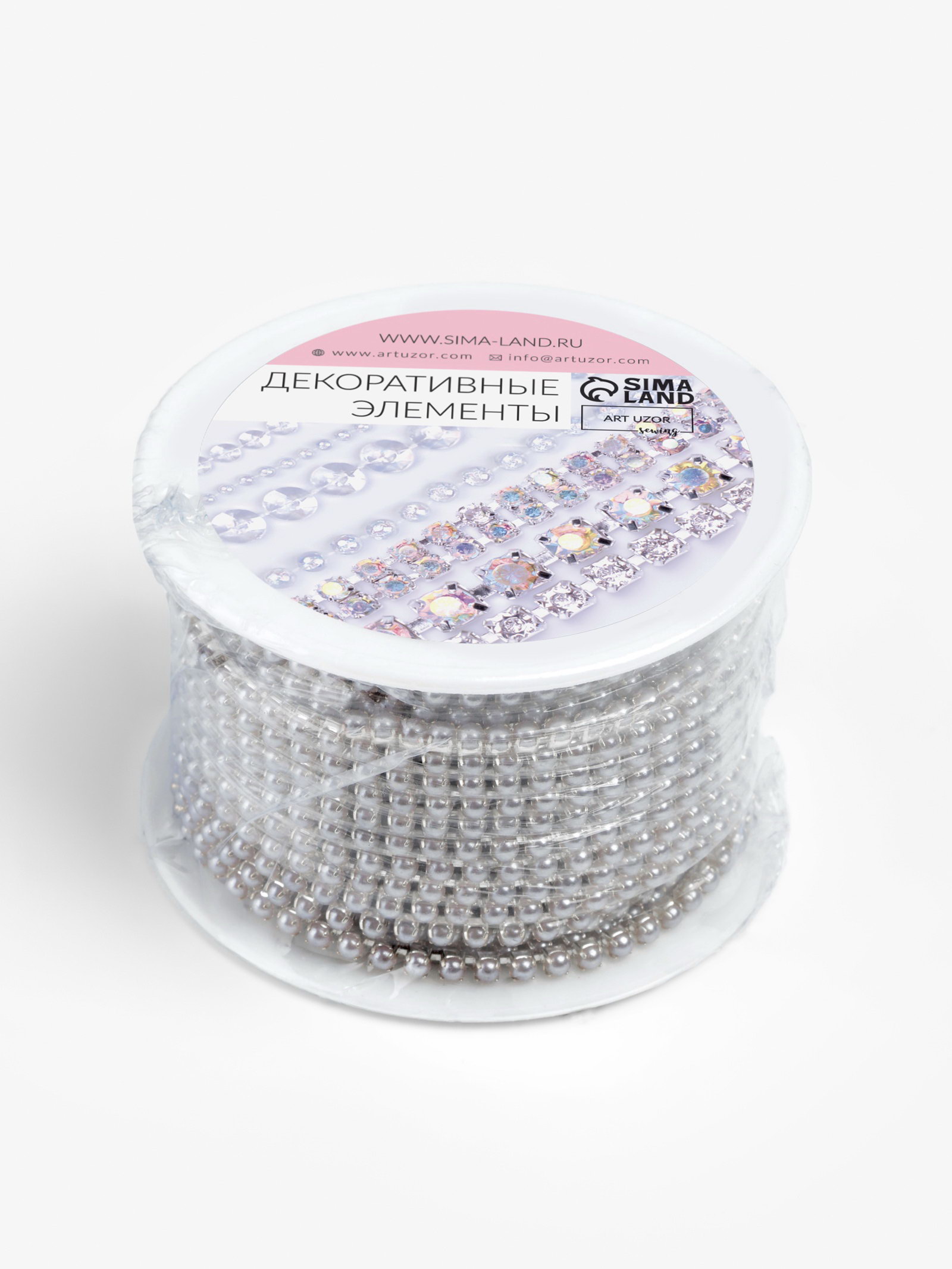 Цепь с жемчугом, металл, пластик, 2 мм, SS6, 9+-1 м, графитовая, 6x6x8 см., Арт Узор, Китай