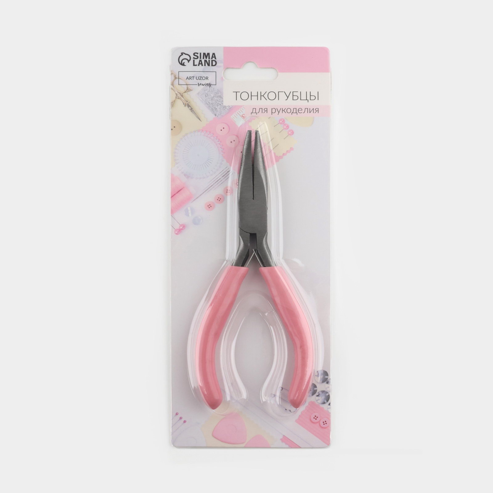 Тонкогубцы изогнутые, для рукоделия, 13 x 6.5 см, цвет серебряный/розовый, 6.5x13x0.5 см., Арт Узор, Китай
