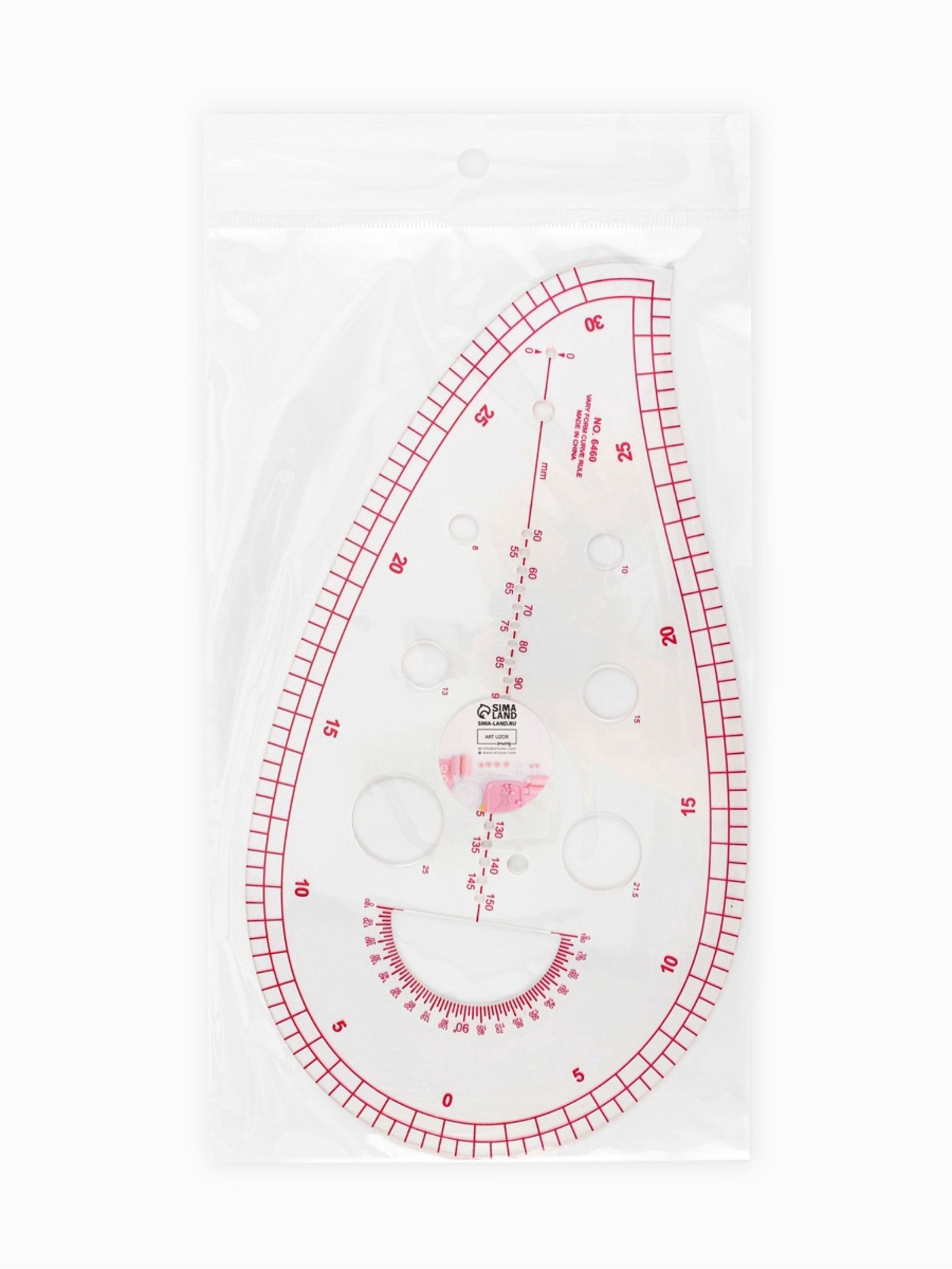 Лекало портновское метрическое "Капля", с проймой, 25x13.5 см, s=0.5 мм, прозрачное, 13.5x25x0.1 см., Арт Узор, Китай