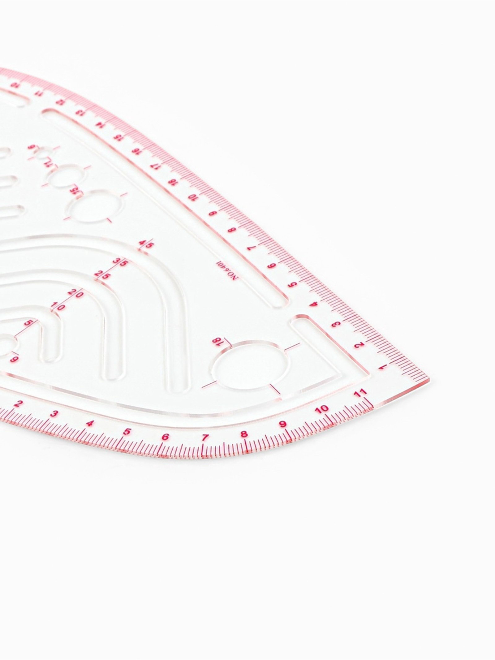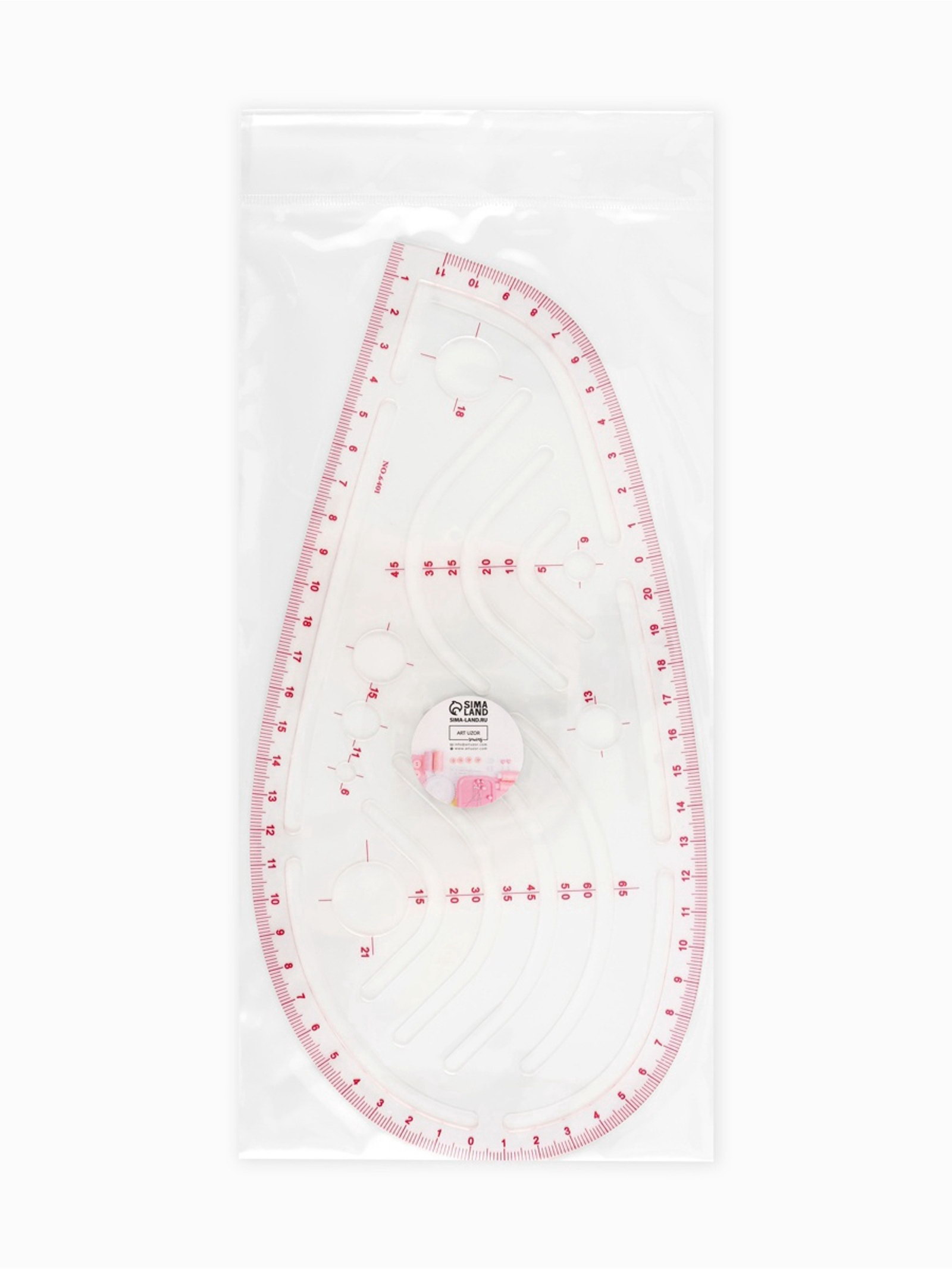 Вид: Капля, Лекало Размер упаковки: 12.5 x 0.1 x 30 см. Размер упаковки: 12.5 x 0.1 x 30 см. tnved: 9017801000 Длина, см: 26 Толщина, мм: 0.5 Лекало "Капля" идеально подойдёт для конструирования брюк, построения углов на воротнике, разметке припусков и петель. Круглая сторона станет отличным помощником для построения линий горловины, проймы, карманов, окружности под разметку пуговиц разного размера. | ||