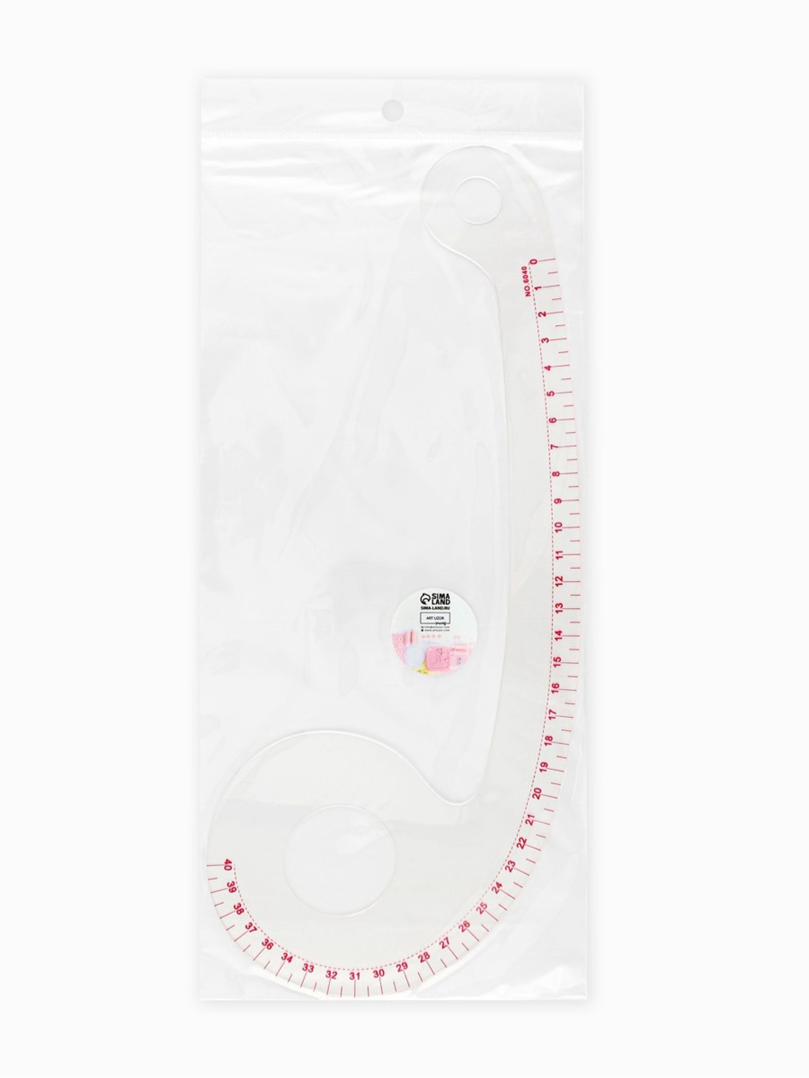 Лекало портновское метрическое "Запятая", с проймой, 31.5x11.5 см, s=0.5 мм, прозрачное, 11.5x31.5x1 см., Арт Узор, Китай