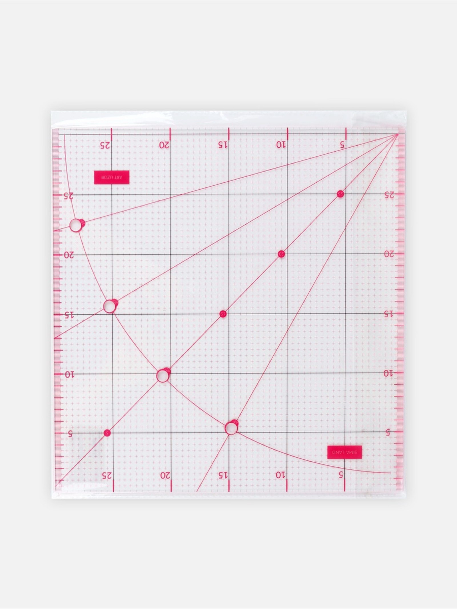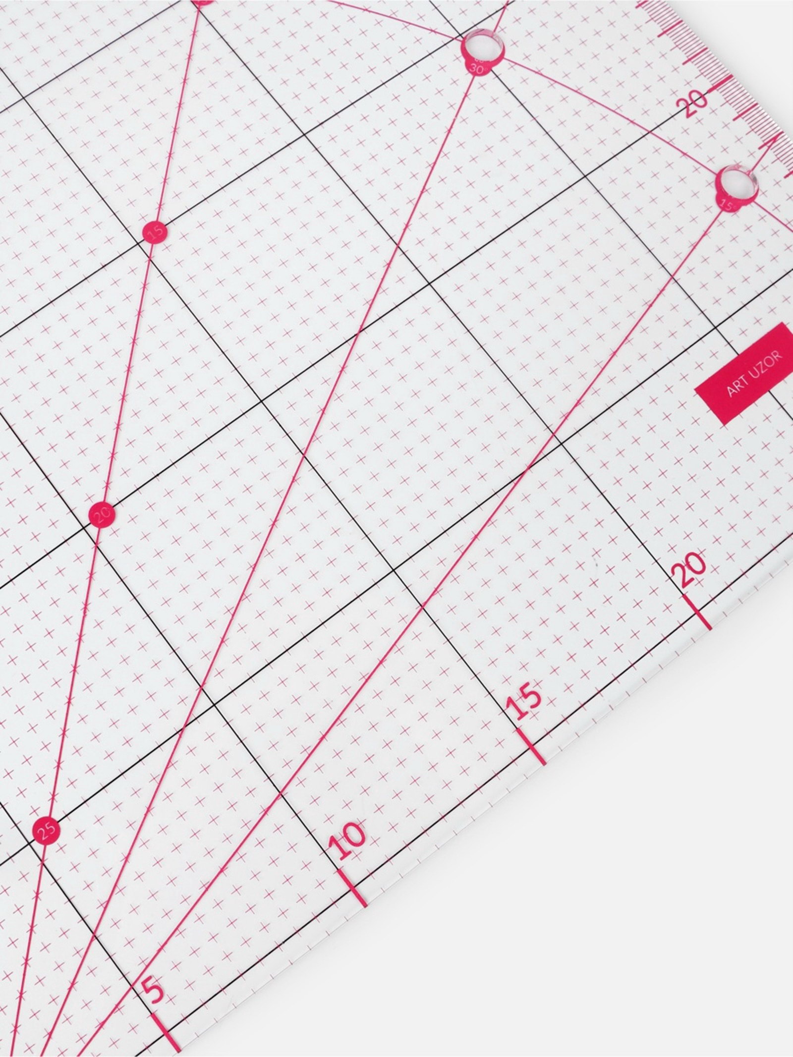 Линейка для квилтинга и пэчворка, с отверстиями, 30x30 см, розовая, 30x30x0.3 см., Арт Узор, Китай