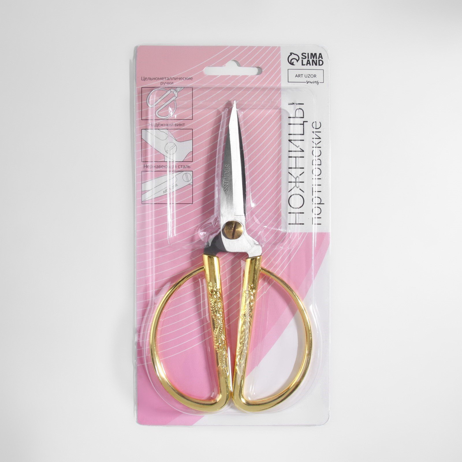 Ножницы для рукоделия, скошенное лезвие, 7", 17 см, цвет золотой, 11.5x17x1.5 см., Арт Узор, Китай