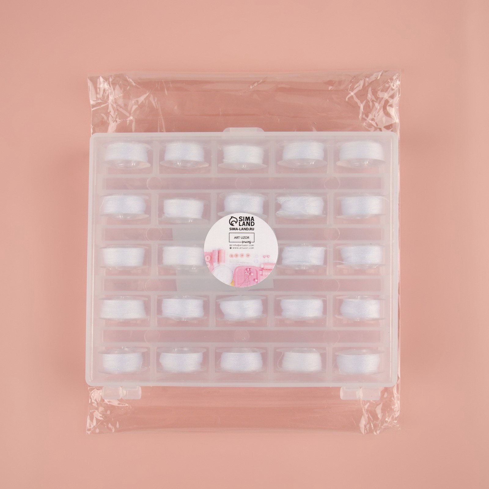 Набор шпулек с нитками, в органайзере, d=20 мм, 25 шт., белый, 9.5x11.5x3 см., Арт Узор, Китай