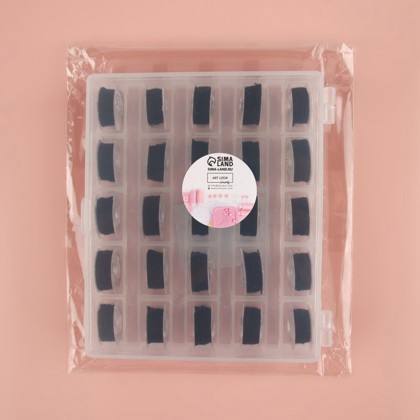 Набор шпулек с нитками, в органайзере, d=20 мм, 25 шт., чёрный, 9.5x11.5x3 см., Арт Узор, Китай