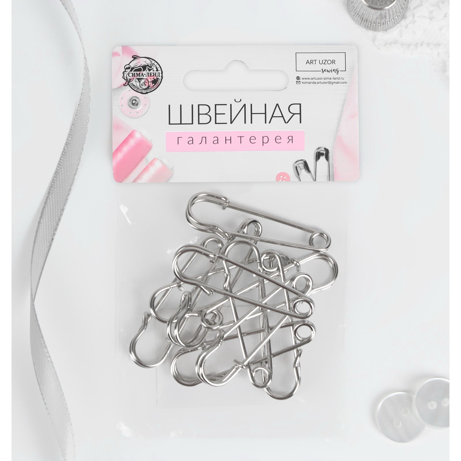 Булавки шляпные, 45 мм, 10 шт., цвет серебряный, 1x4.5x0.3 см., Арт Узор, Китай
