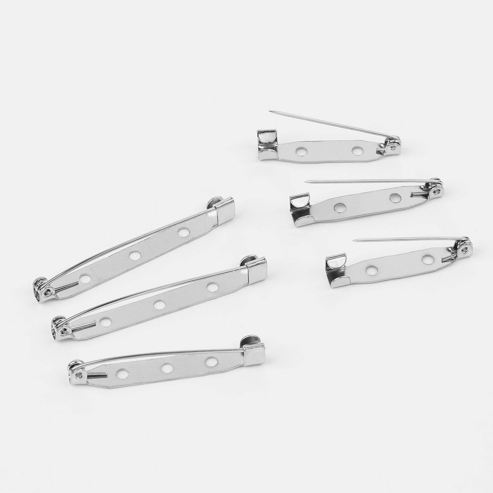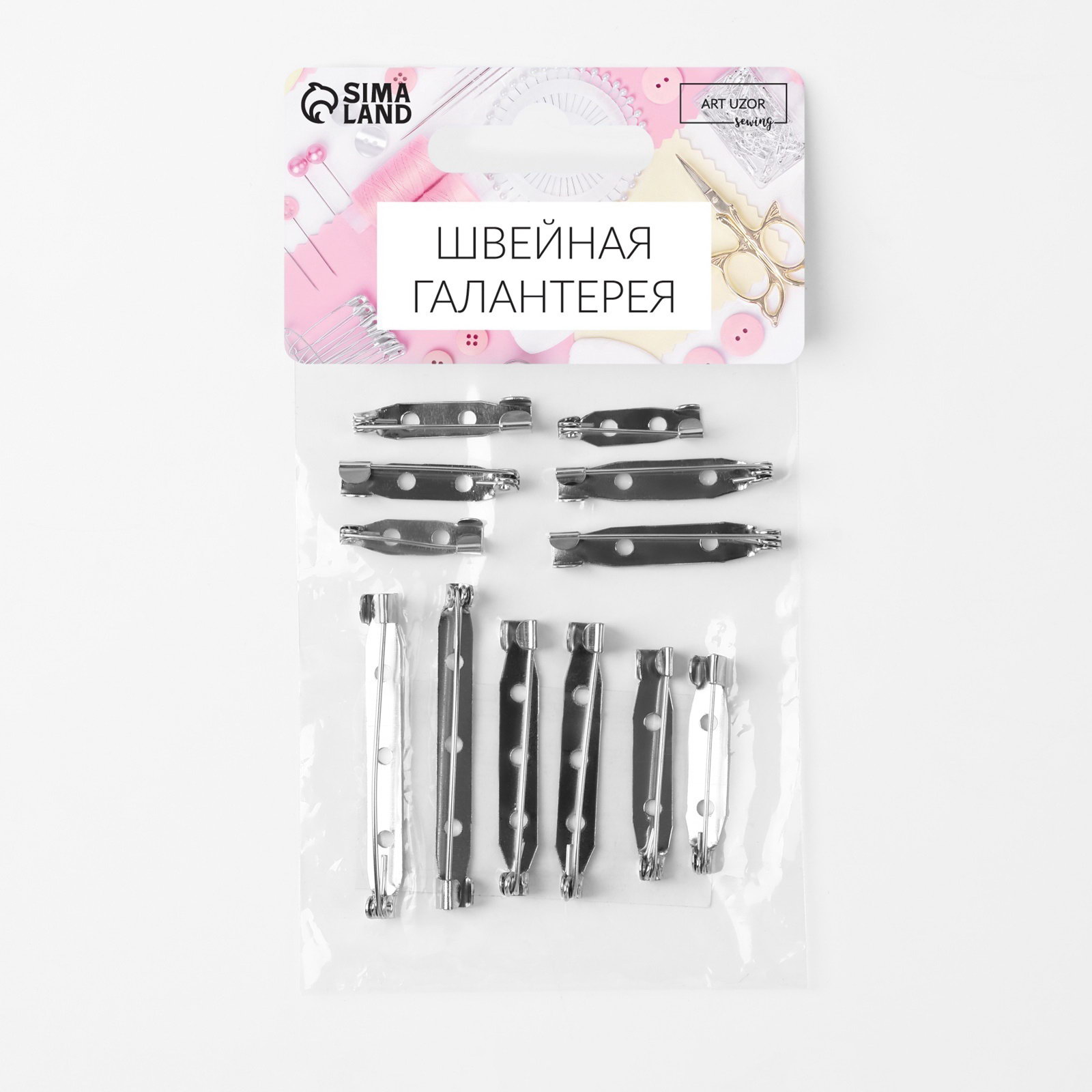 Основа для броши, 45/40/32/30/25/20 мм, набор 12 шт., цвет серебряный, 7x10x2 см., Арт Узор, Китай