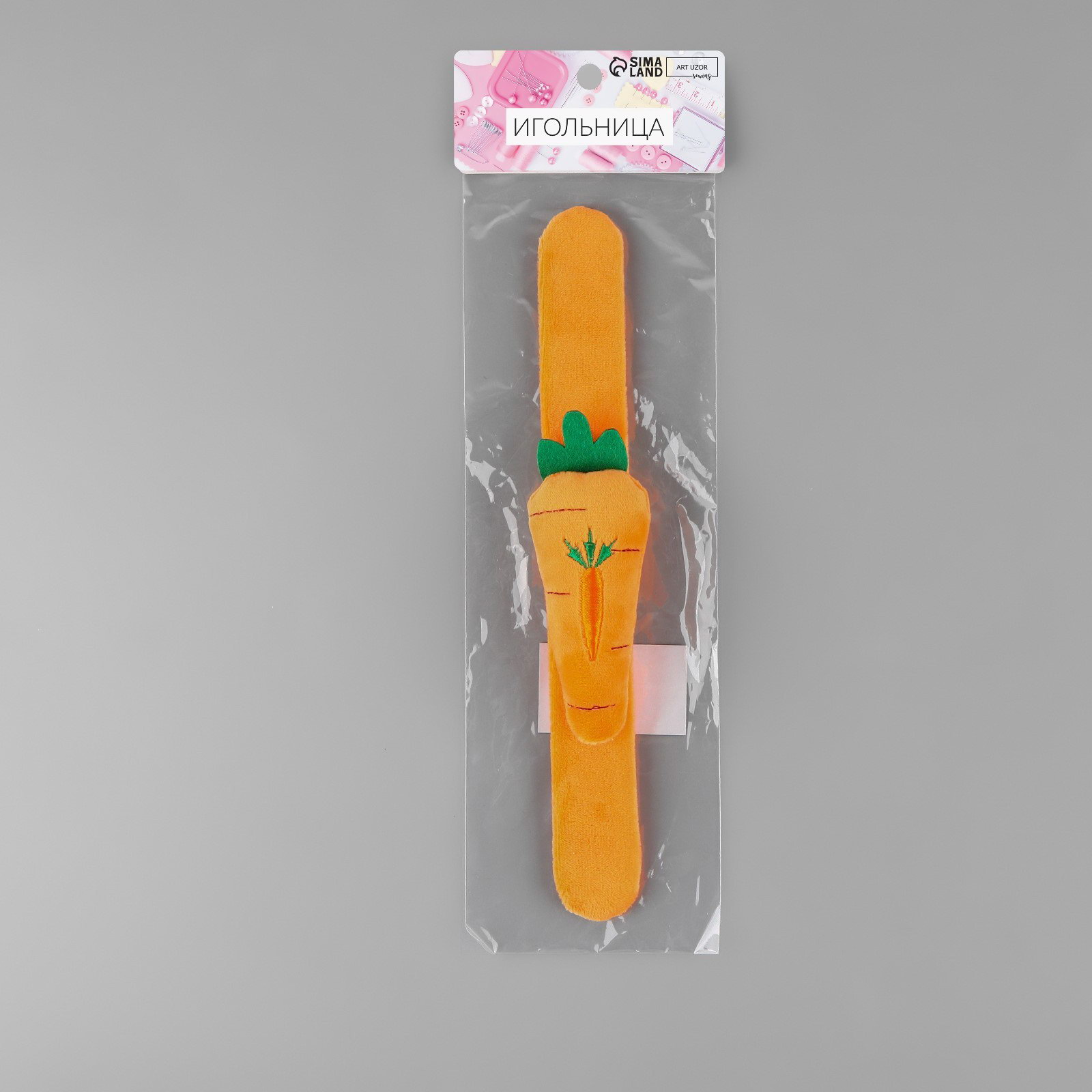 Игольница на браслете "Морковка", 23x4.5 см, оранжевая, 4.5x23x3 см., Арт Узор, Китай