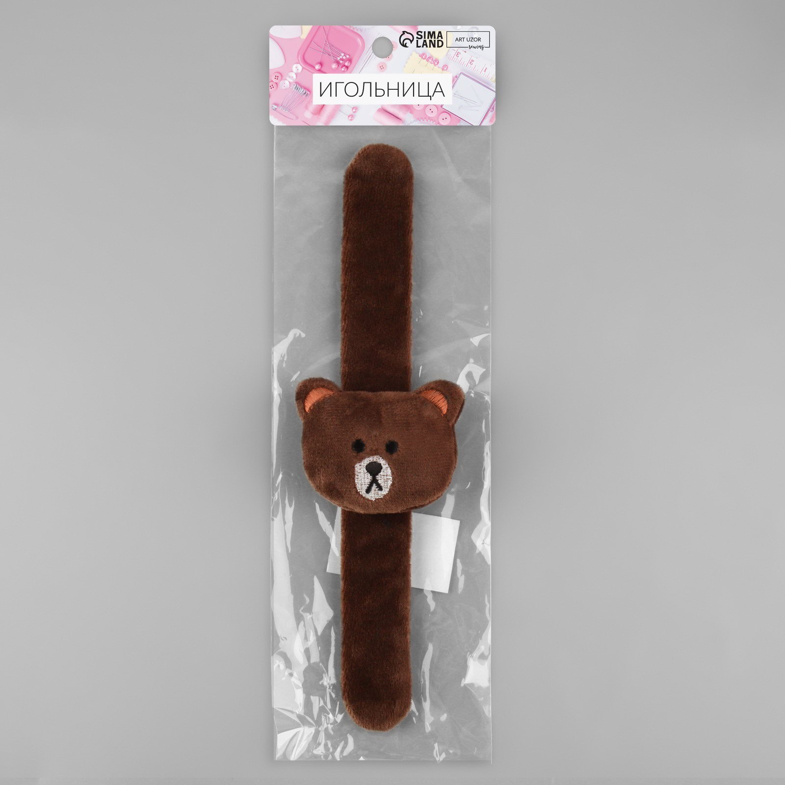 Игольница на браслете "Мишка", 23x6.5 см, тёмно-коричневая, 6.5x23x2.5 см., Арт Узор, Китай