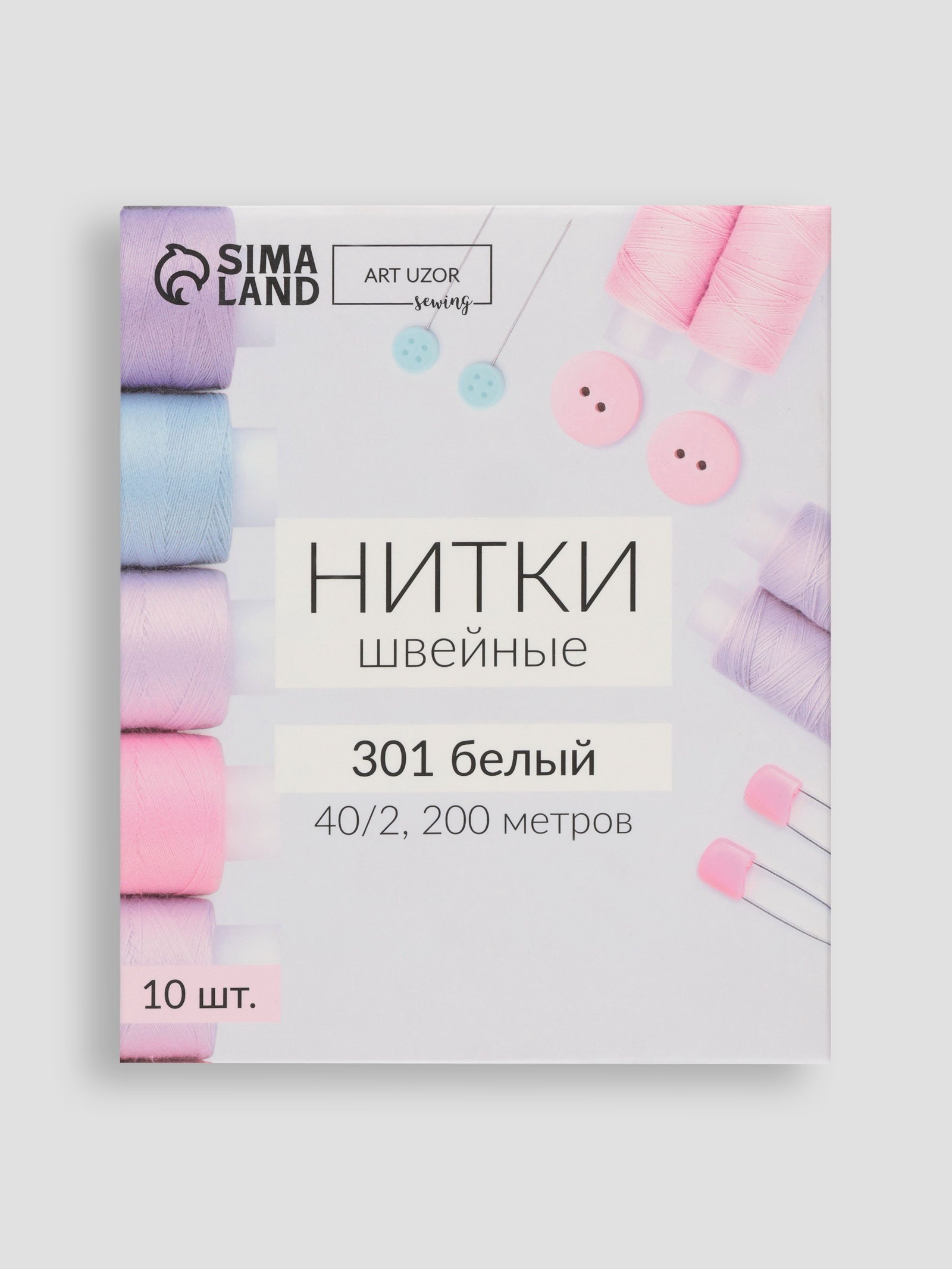 Нитки 40/2, 200 м, белые №301, 1.5x5.8x1.5 см., Арт Узор, Китай