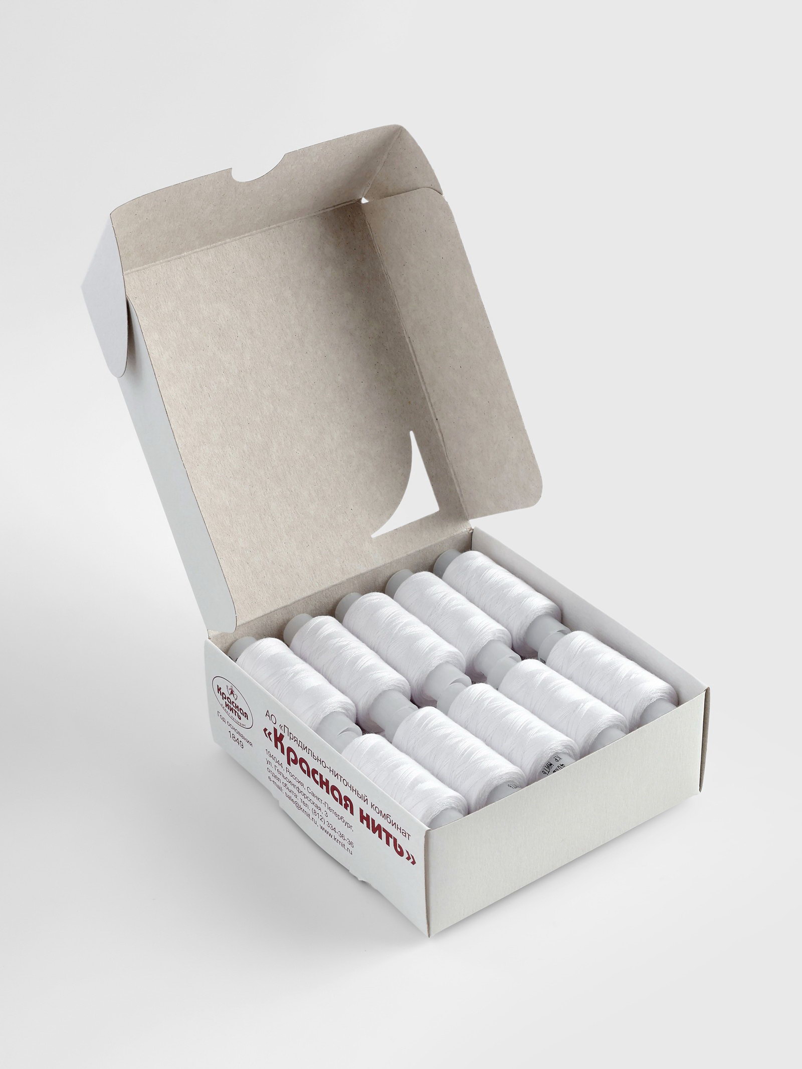 Нитки 40ЛШ, 200 м, белые №001, Красная нить, Россия