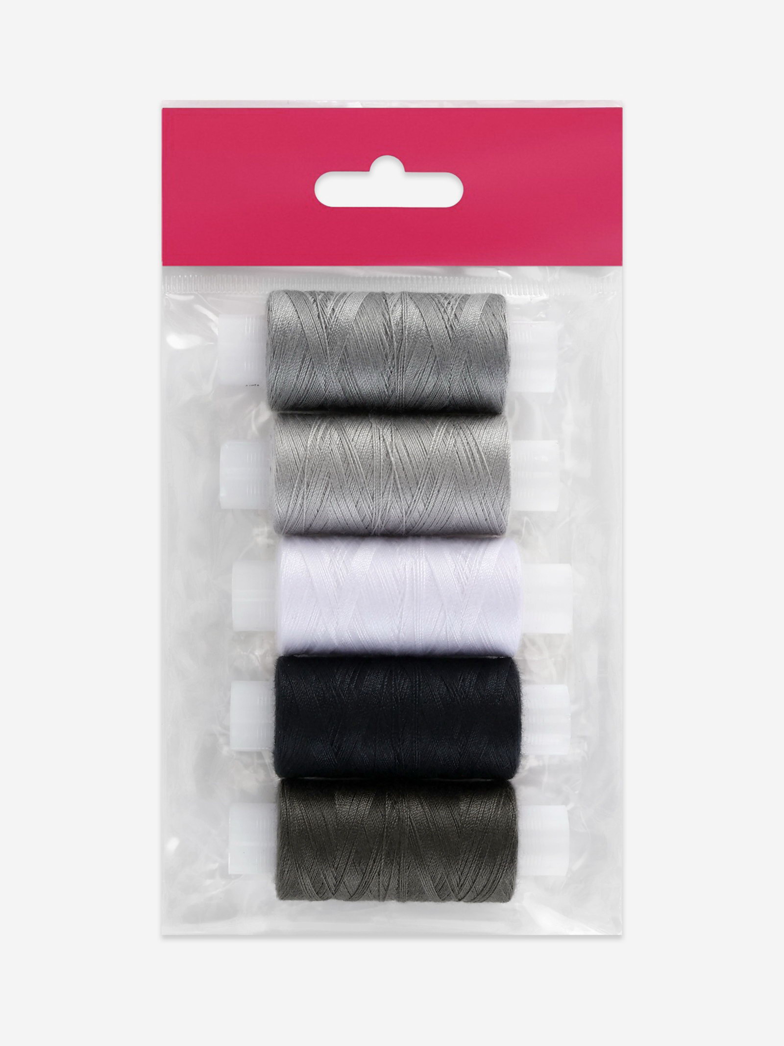 Нитки 40ЛШ, 200 м, набор 5 шт., чёрный, серый, Красная нить, Россия