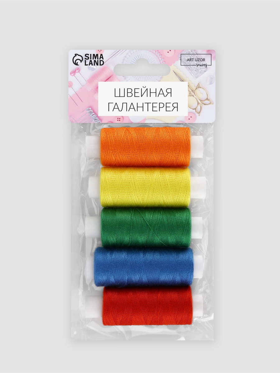 Нитки "Радуга", 40/2, 200 м, набор 5 шт., разноцветные, 8x10x2 см., Арт Узор, Китай