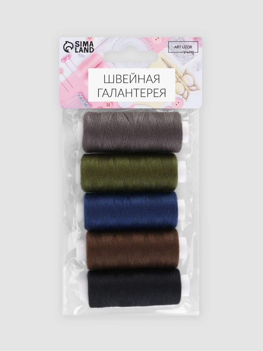 Нитки "Тёмный лес", 40/2, 200 м, набор 5 шт., разноцветные, 8x10x2 см., Арт Узор, Китай