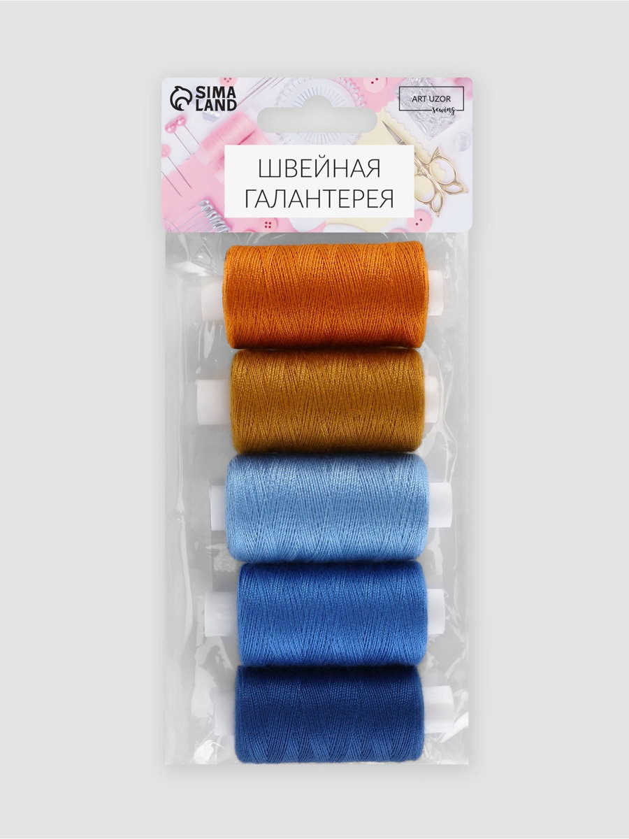 Нитки джинсовые №1, 20/2, 200 м, набор 5 шт., разноцветные, 8x13x3 см., Арт Узор, Китай