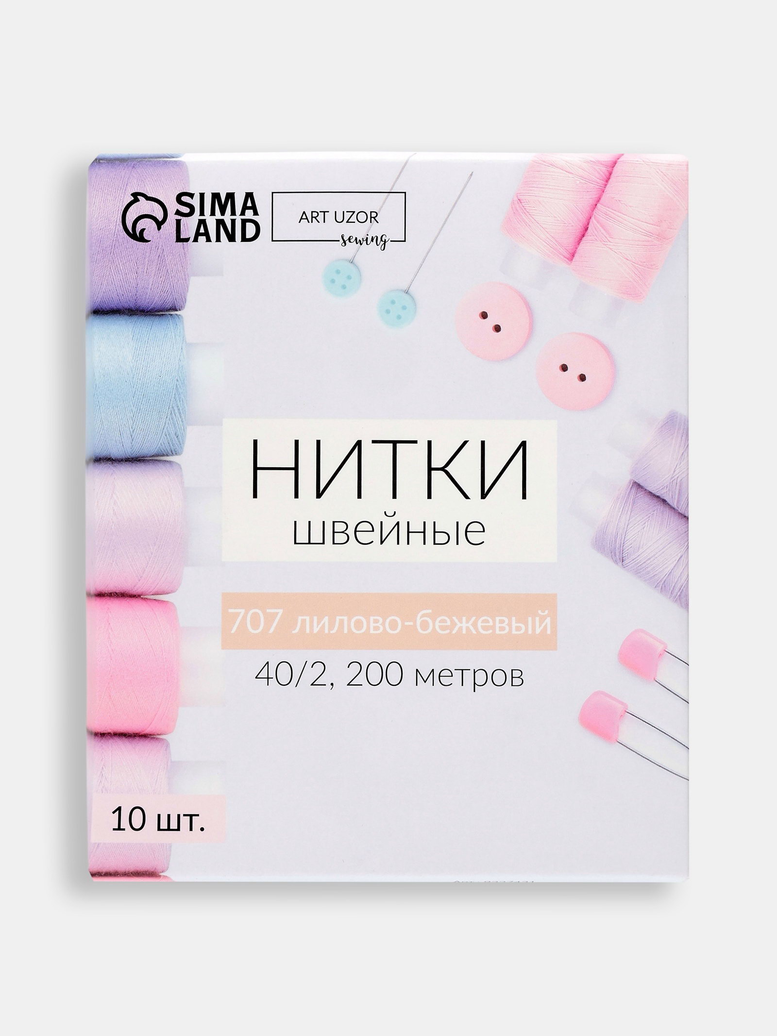 Нитки 40/2, 200 м, бежевые №707, 1.5x5.8x1.5 см., Арт Узор, Китай