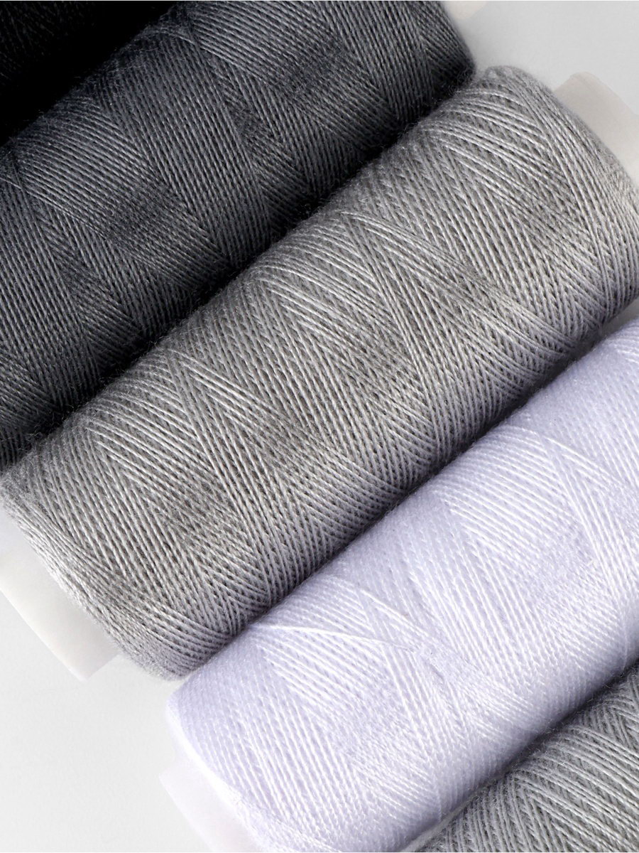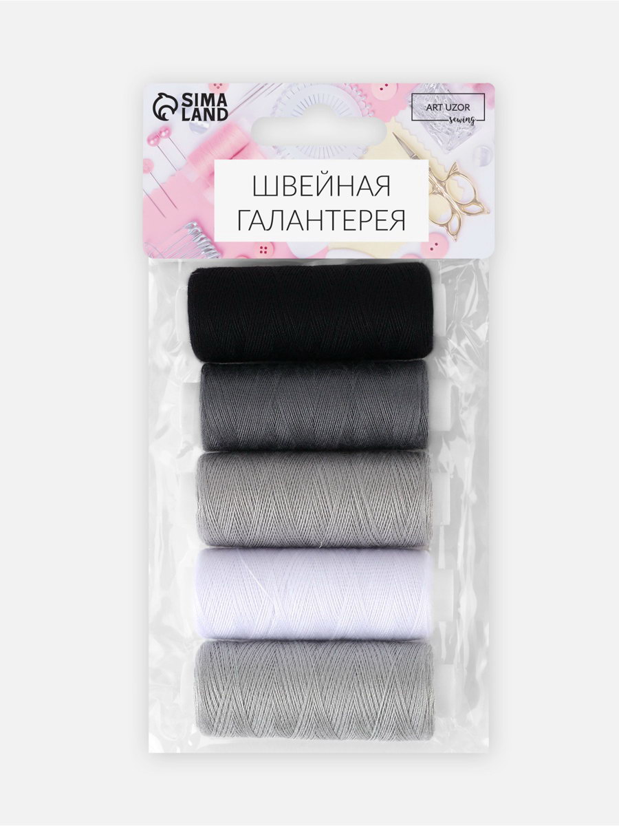 Нитки, 40/2, 183 м, набор 5 шт., чёрные, серые, 6x10x2 см., Арт Узор, Китай