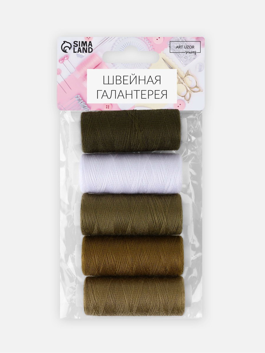 Нитки, 40/2, 183 м, набор 5 шт., хаки, зелёные, 6x10x2 см., Арт Узор, Китай