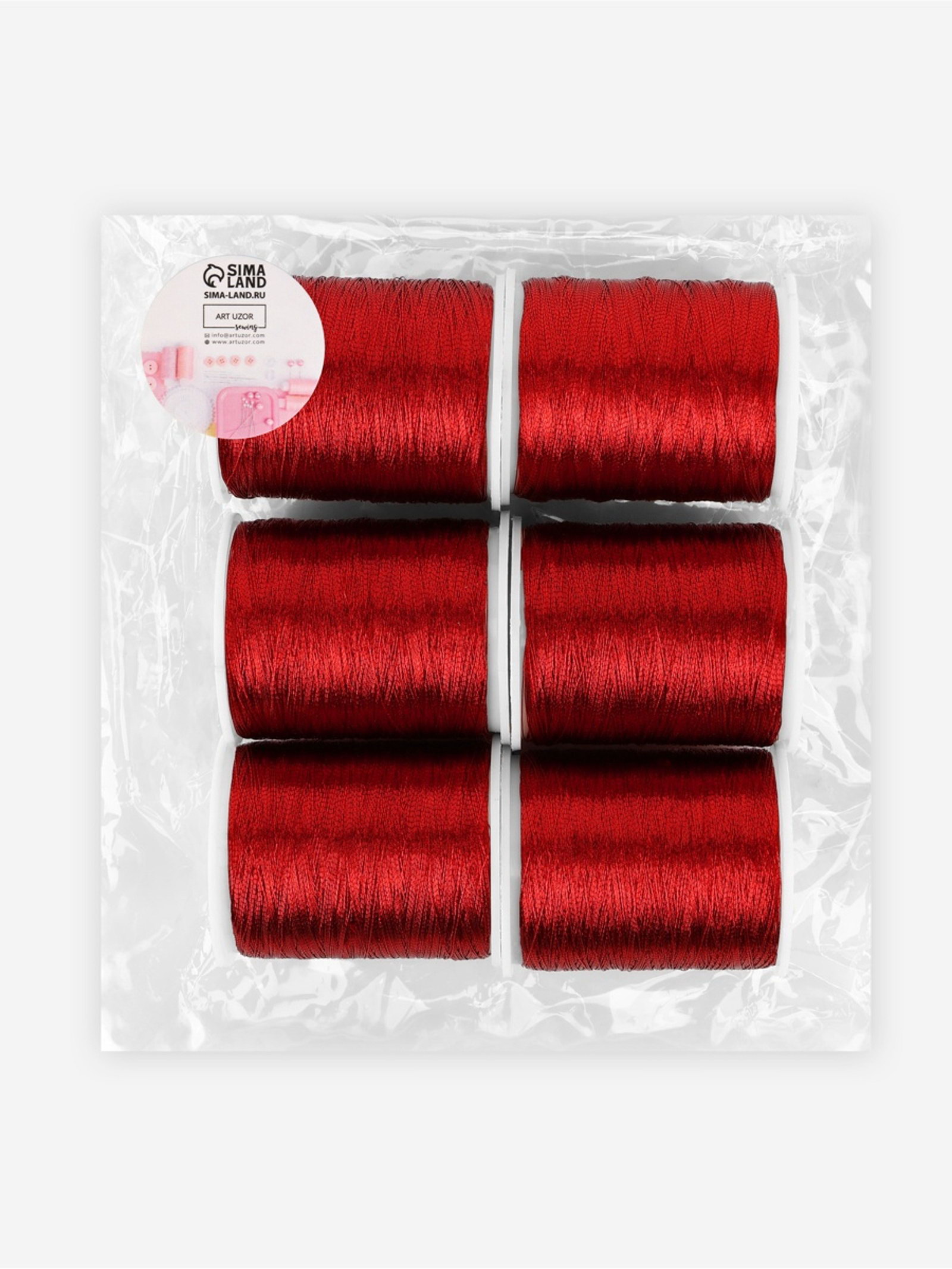 Нитки металлизированные, 91+-1 м, набор 6 шт., красные, 9x10x3 см., Арт Узор, Китай