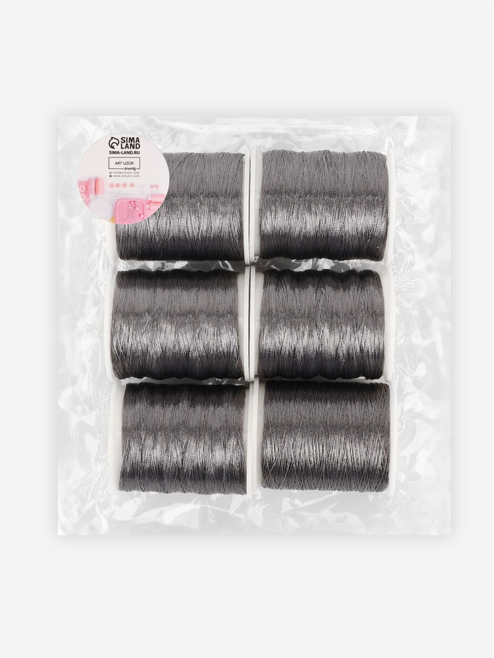 Нитки металлизированные, 91+-1 м, набор 6 шт., серые, 9x10x3 см., Арт Узор, Китай