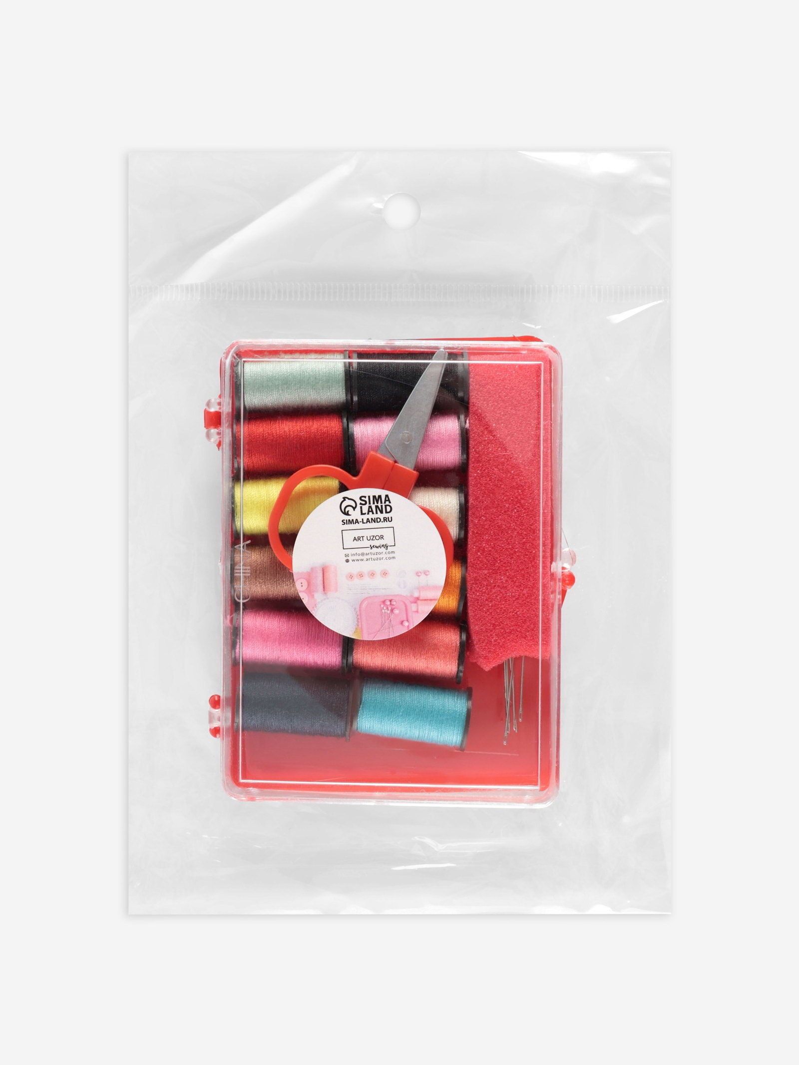 Швейный набор, 15 предметов, в пластиковой коробке, 8x5.5x2.5 см, 5.5x8x2.5 см., Арт Узор, Китай