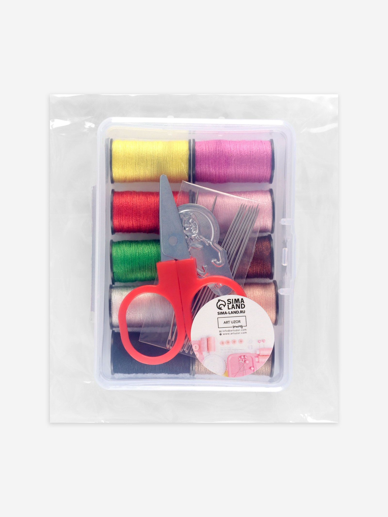 Швейный набор, 22 предмета, в пластиковом контейнере, 7.8x5.7x2.7 см, 5.7x7.8x2.7 см., Арт Узор, Китай