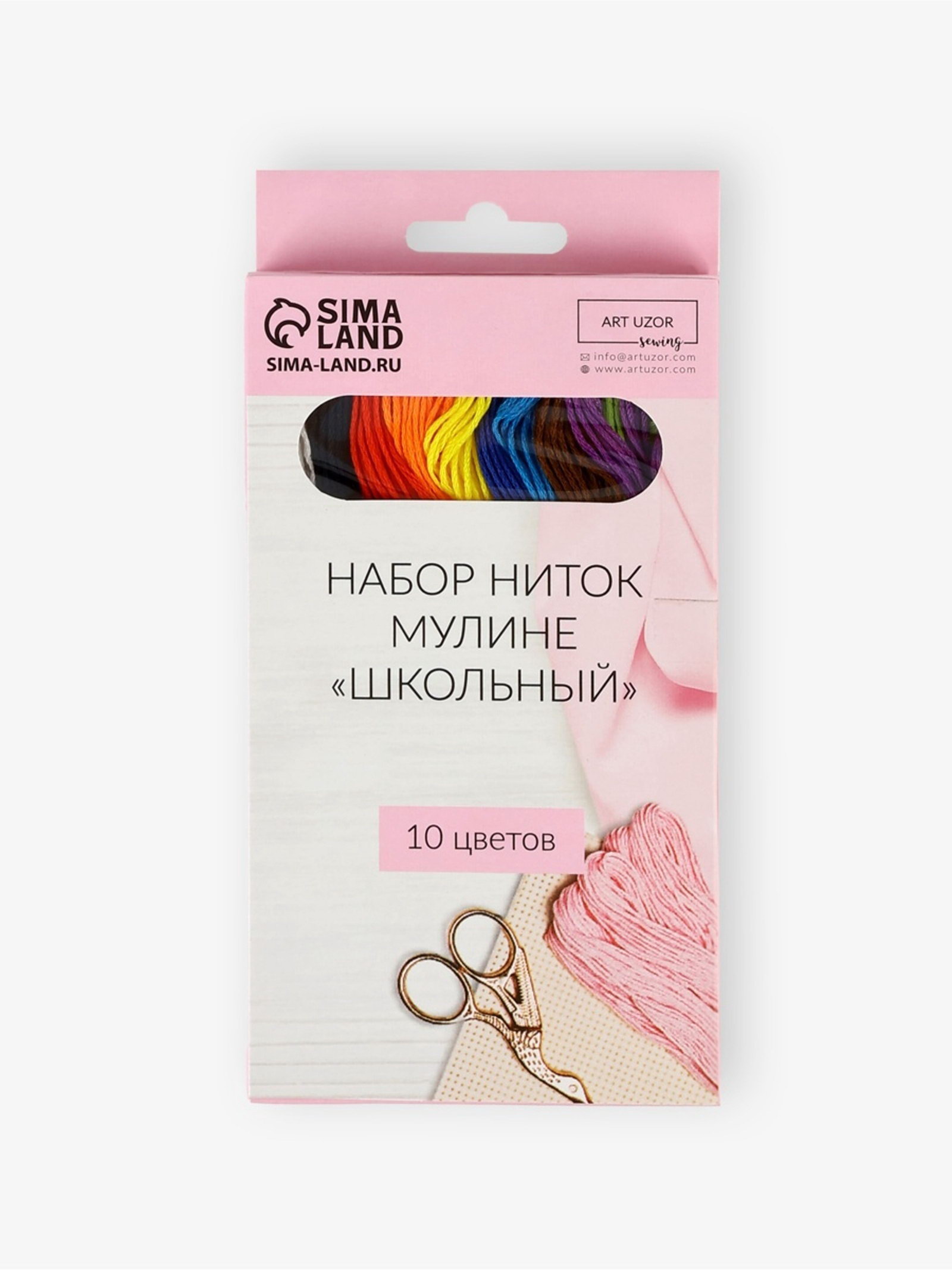 Набор ниток мулине "Школьный", 8+-1 м, 10 шт., 9x16x0.7 см., Арт Узор, Китай