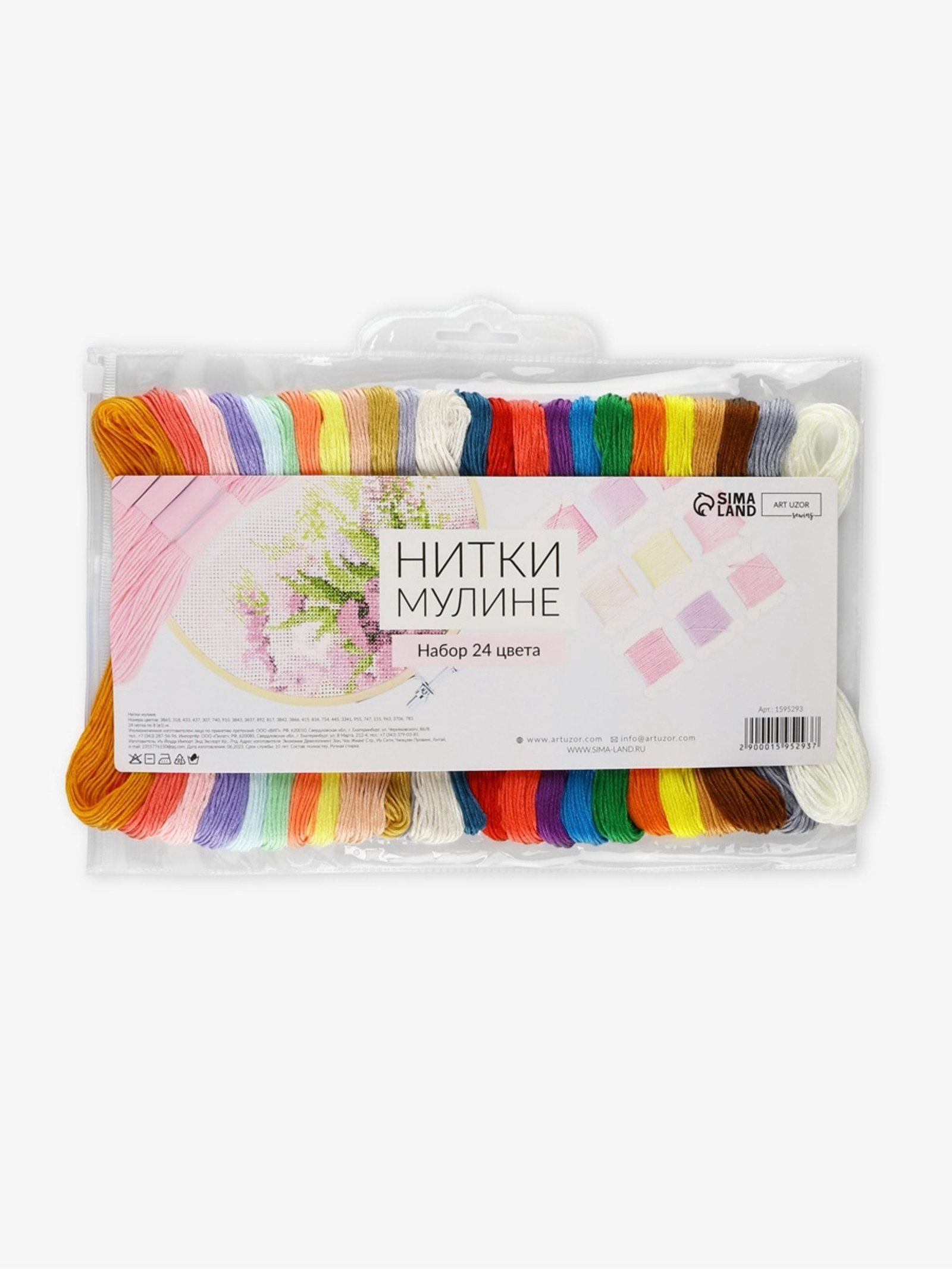 Нитки мулине, №2 - №6, 8+-1 м, набор 24 шт., разноцветные, 12x16x1.5 см., Арт Узор, Китай