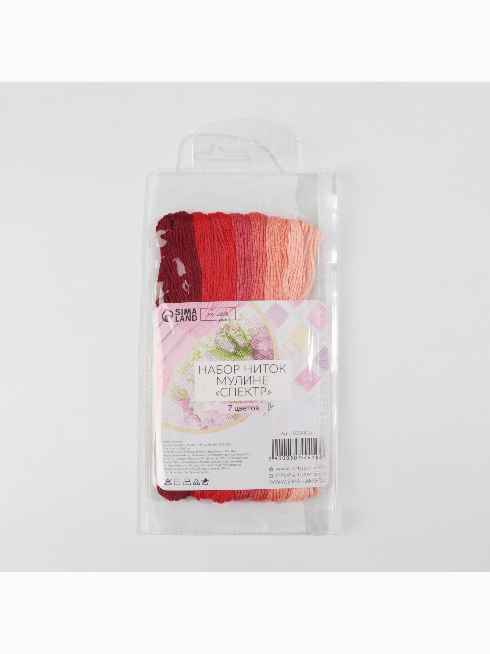 Нитки мулине, 8+-1 м, набор 7 шт., красные, 10x15x1 см., Арт Узор, Китай