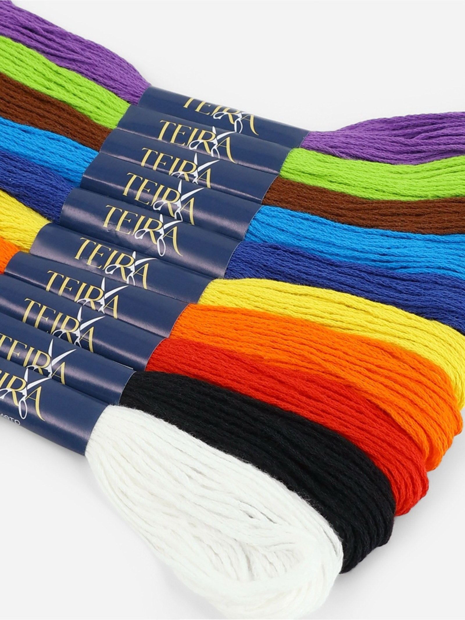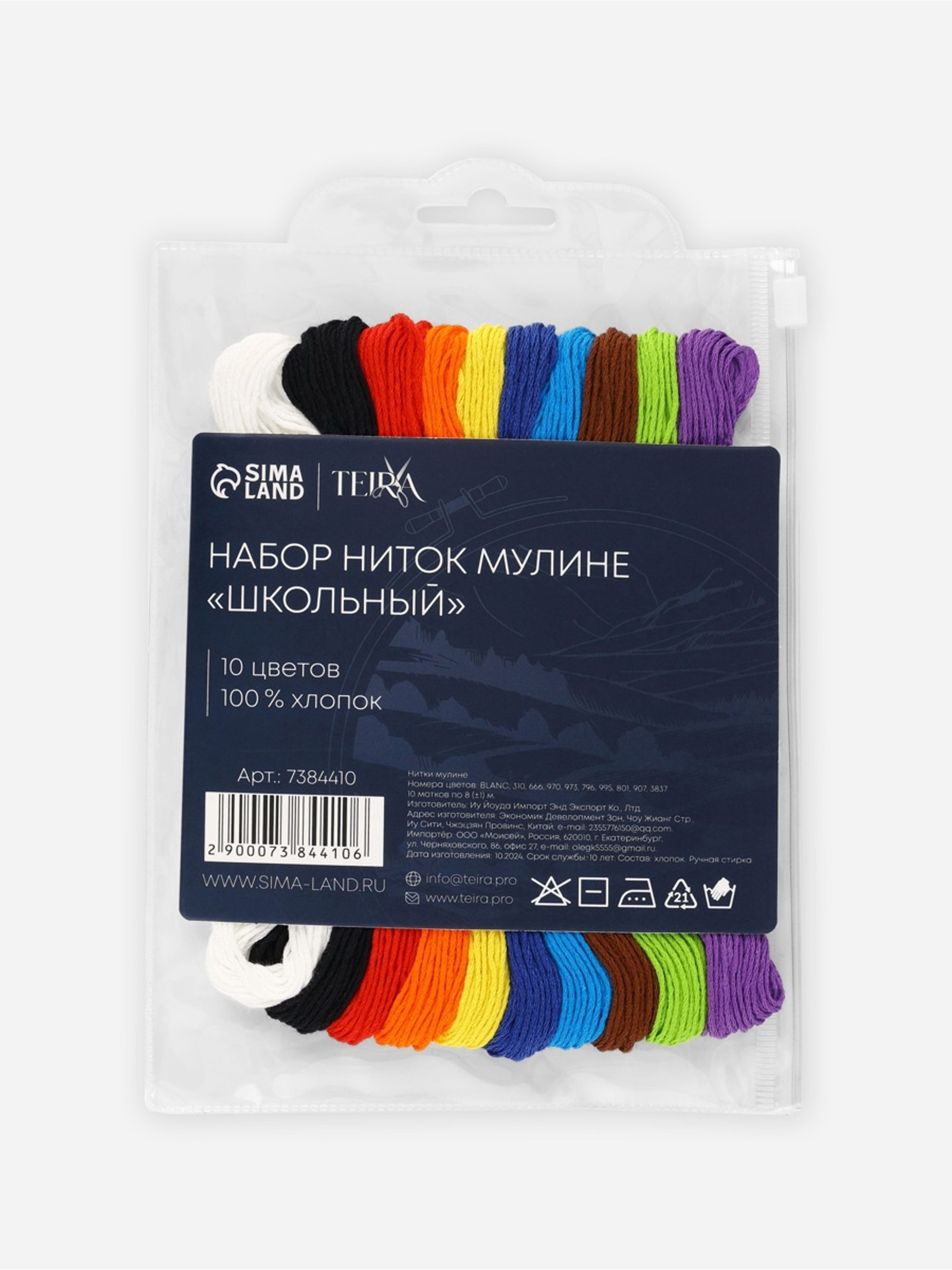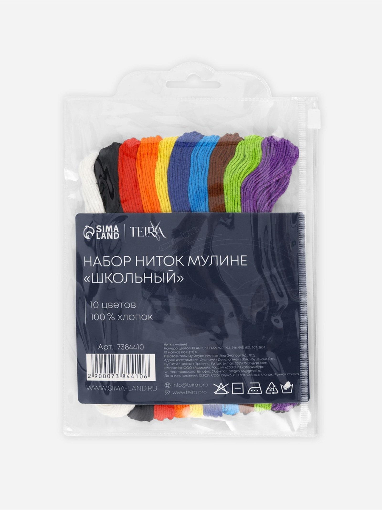 Нитки мулине "Школьные", хлопок, 8+-1 м, 10 шт., разноцветные, 14x21x0.5 см., TEIRA, Китай