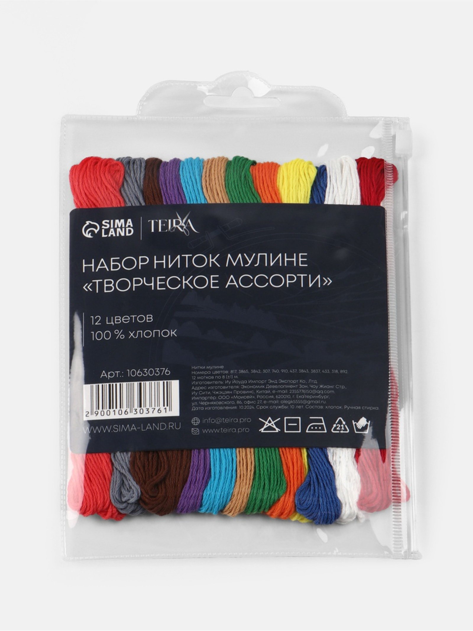 Нитки мулине "Сочный", 8+-1 м, 12 шт., разноцветные, 14x21x1 см., TEIRA, Китай