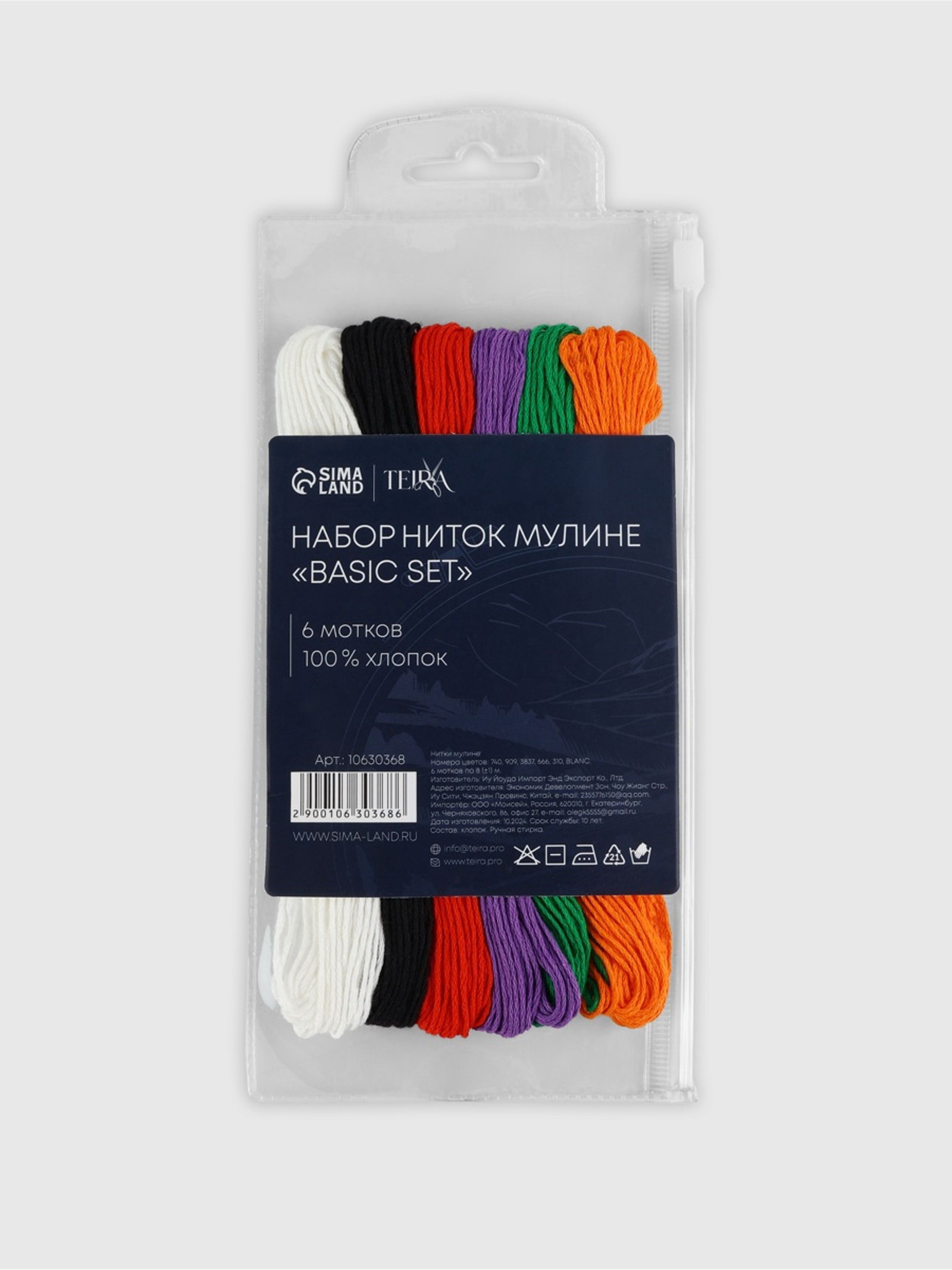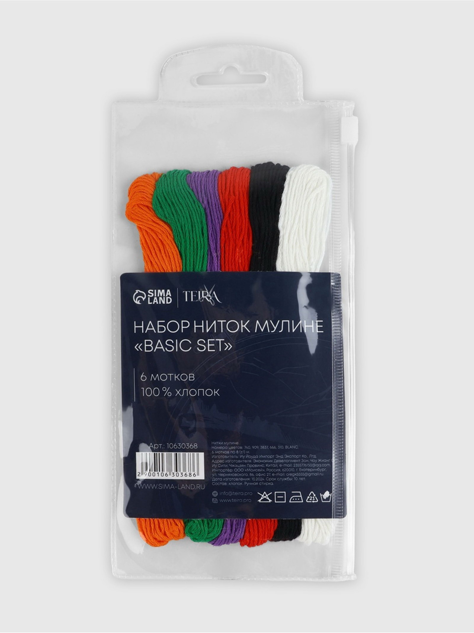 Нитки мулине 8+-1 м, набор 6 шт., хлопок, разноцветные, 10x22x1 см., TEIRA, Китай