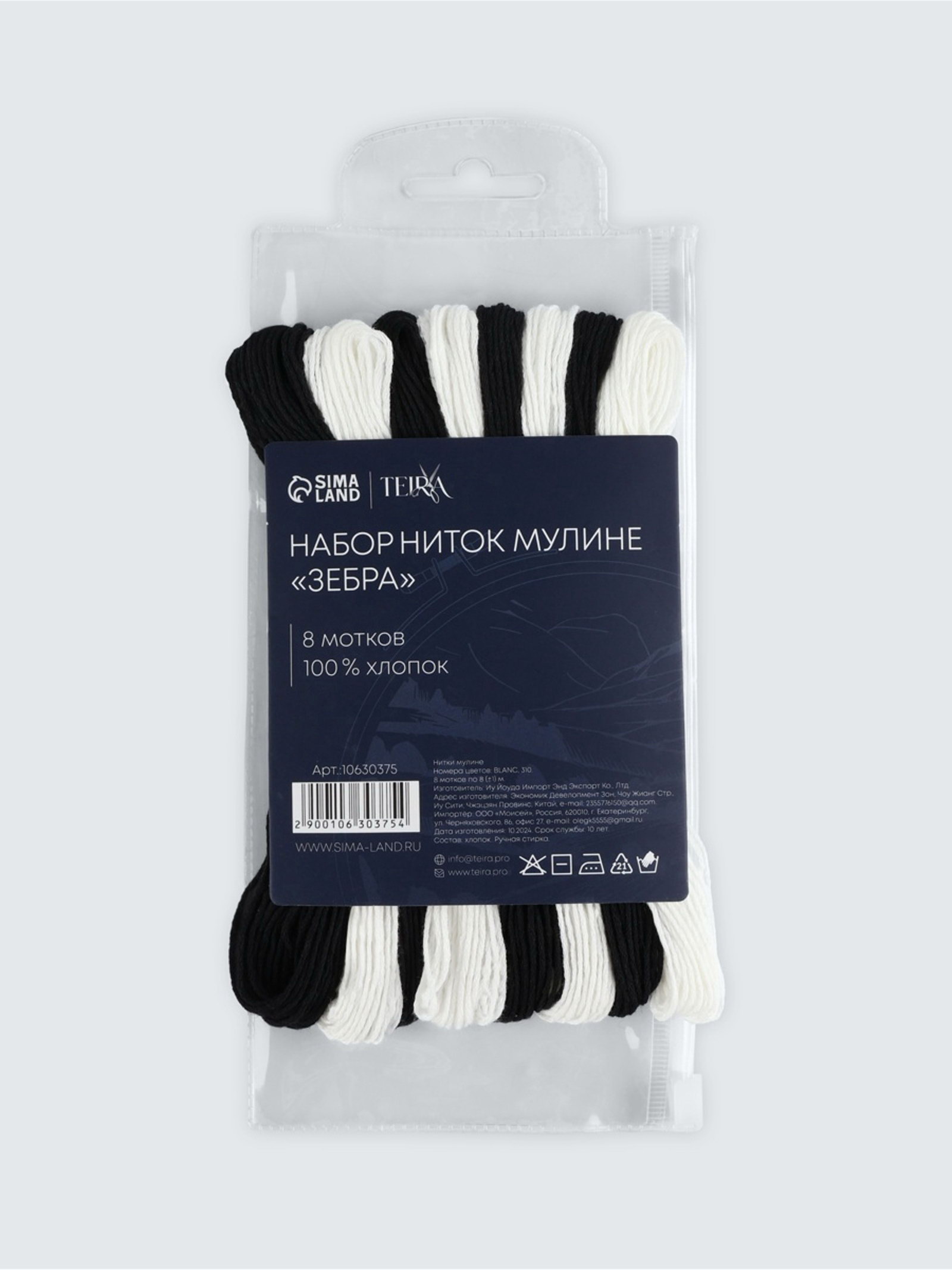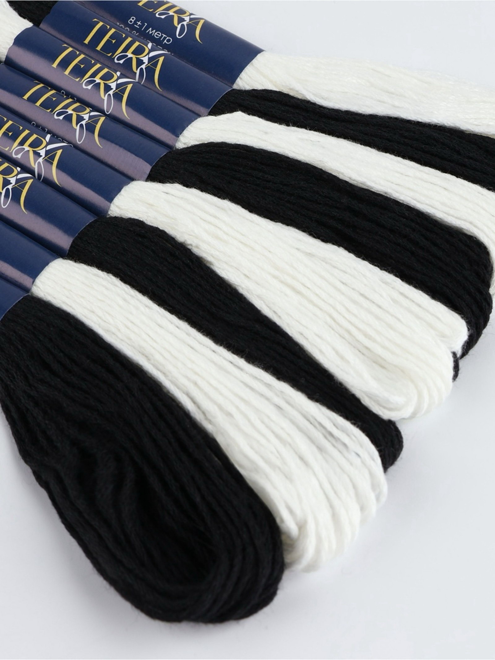 Нитки мулине 8+-1 м, набор 8 шт., хлопок, чёрные, белые, 10x22x1 см., TEIRA, Китай
