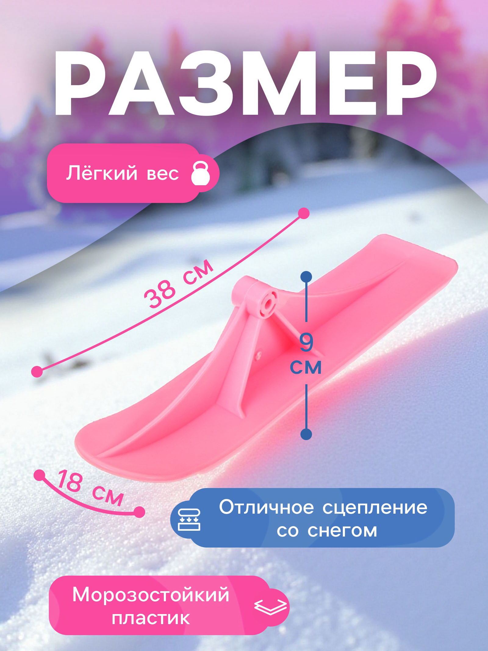 Размер упаковки: 9 x 18 x 38 см. Вид: Лыжи Цвет: Розовый tnved: 9503001000 Максимально допустимый вес, кг: 100 Возраст: От 3 лет Лыжи подходят для простых и трюковых зимних самокатов. Устанавливаются на места крепления колёс. | ||