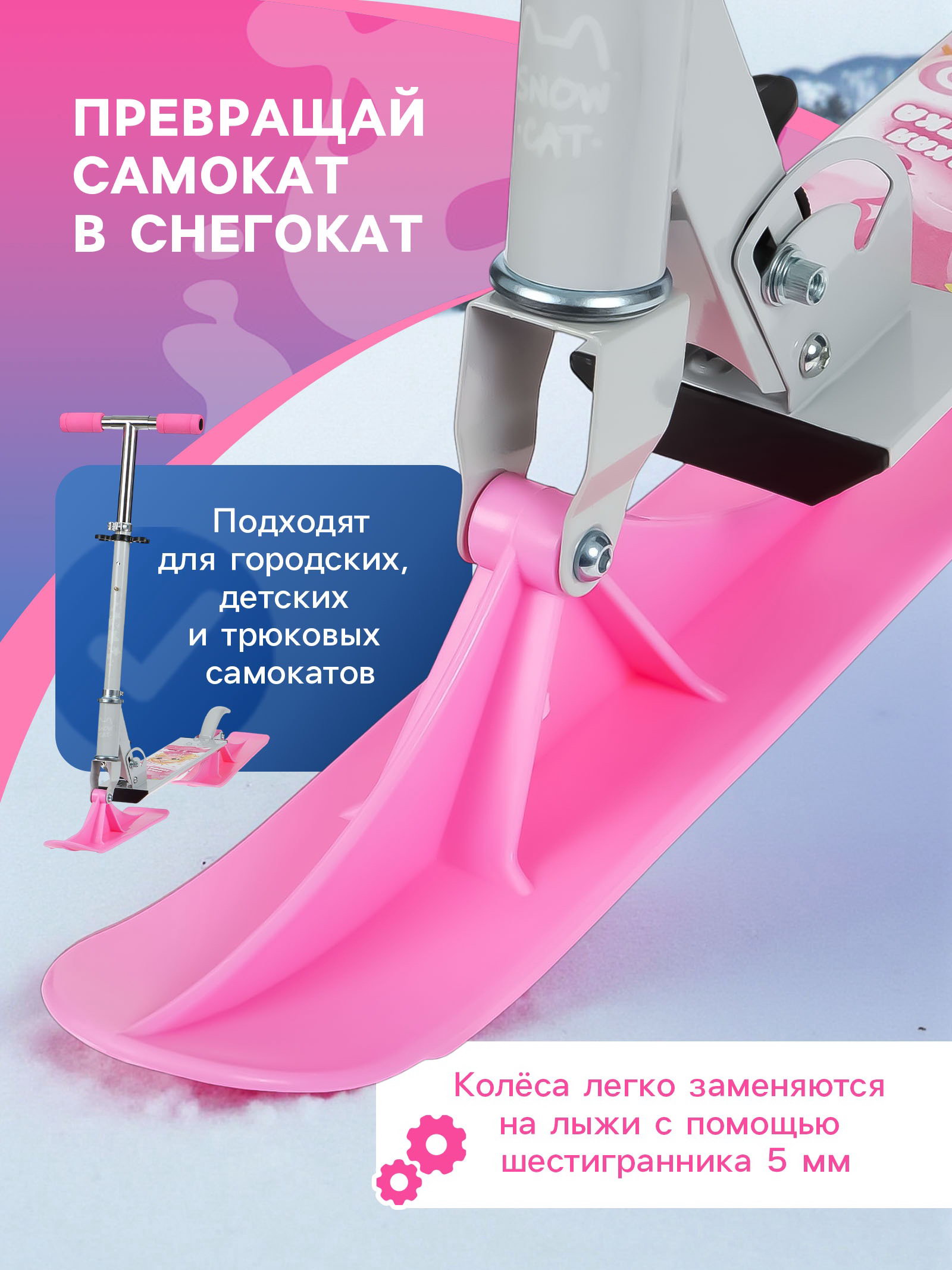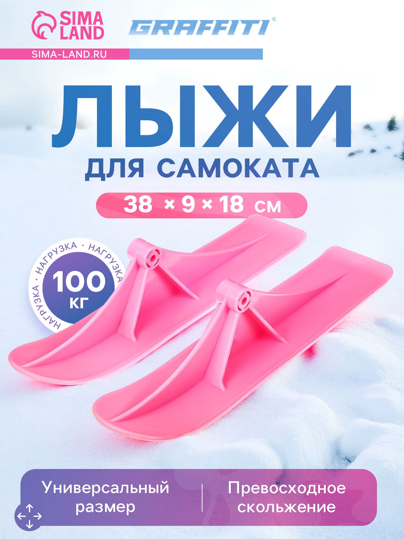 Лыжи для самокатов-снегокатов, пара, цвет розовый, GRAFFITI, Китай
