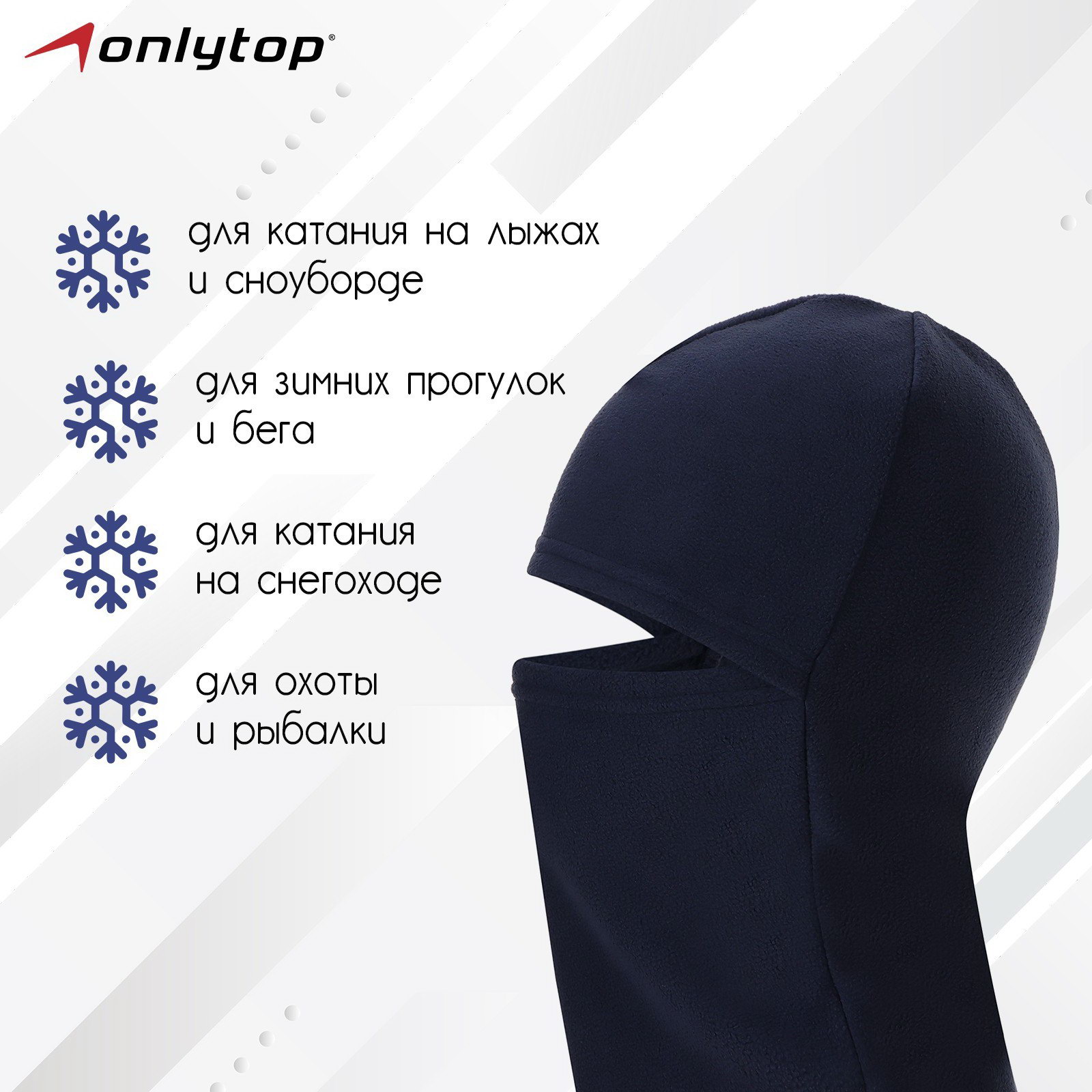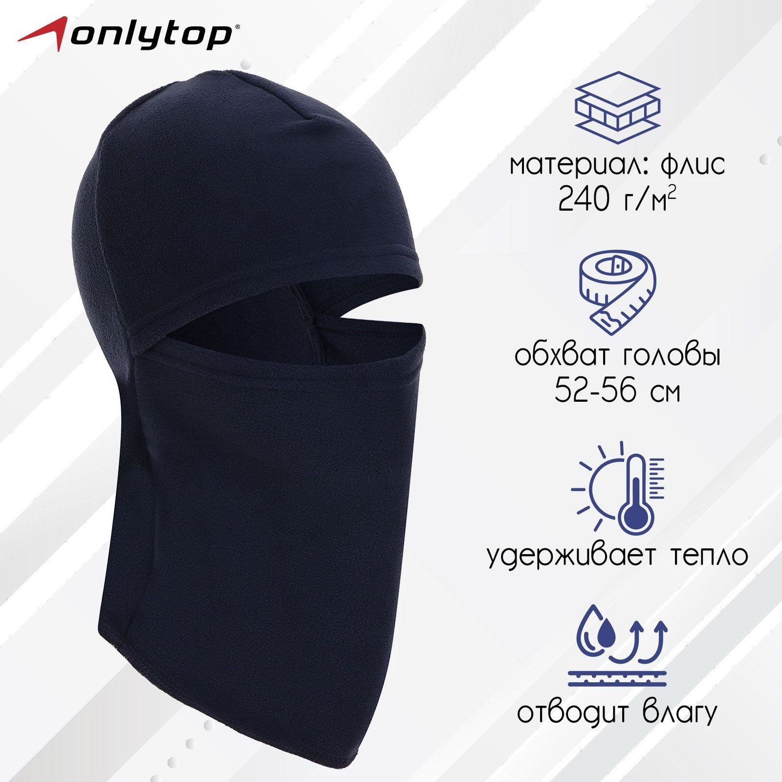 Балаклава ветрозащитная цвет синий, размер S, обхват 52-56 см, ONLYTOP, Россия