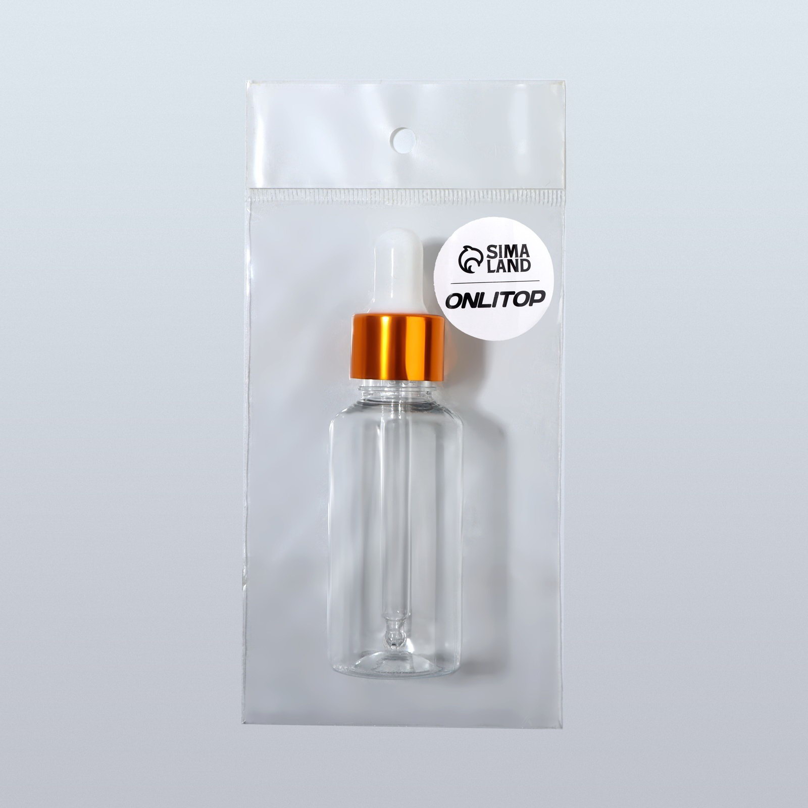 Бутылочка для хранения, с пипеткой, 30 мл, цвет золотой/белый, 3x9x3 см., ONLYTOP, Китай