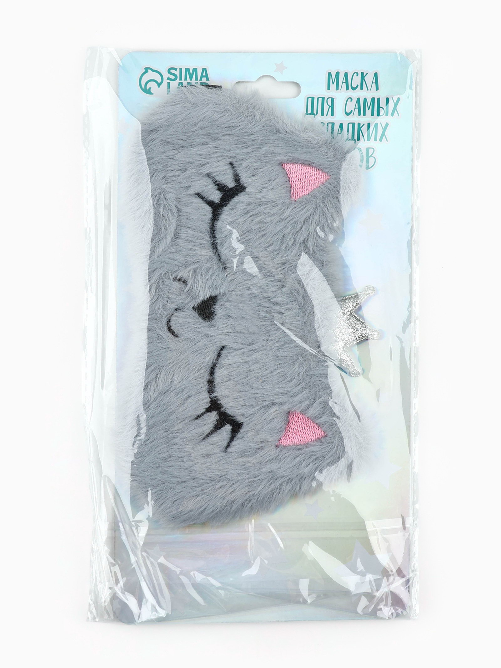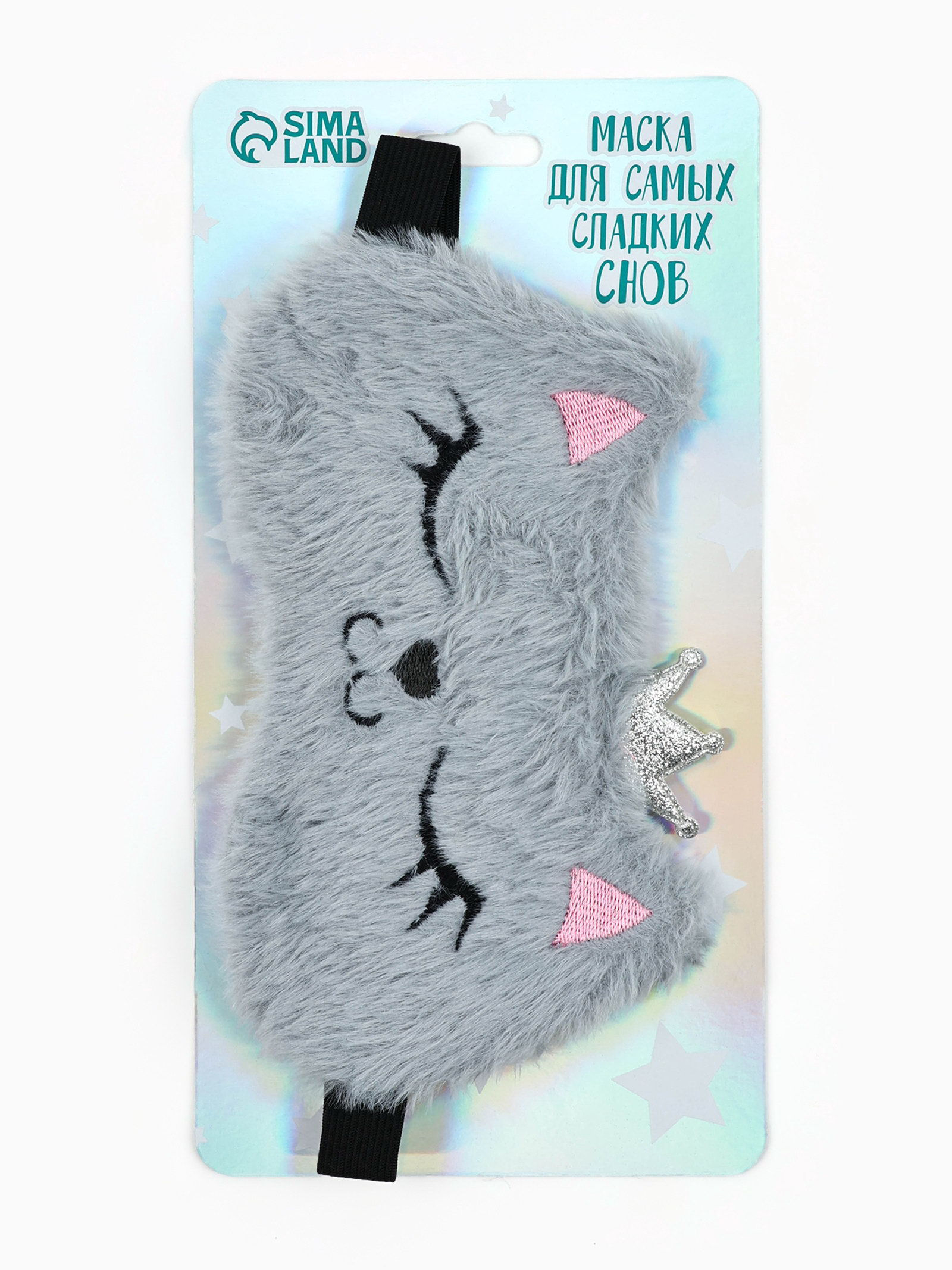 Маска для сна "Кошечка", серая, 12.4x19.3x1 см., Сима-ленд, Китай