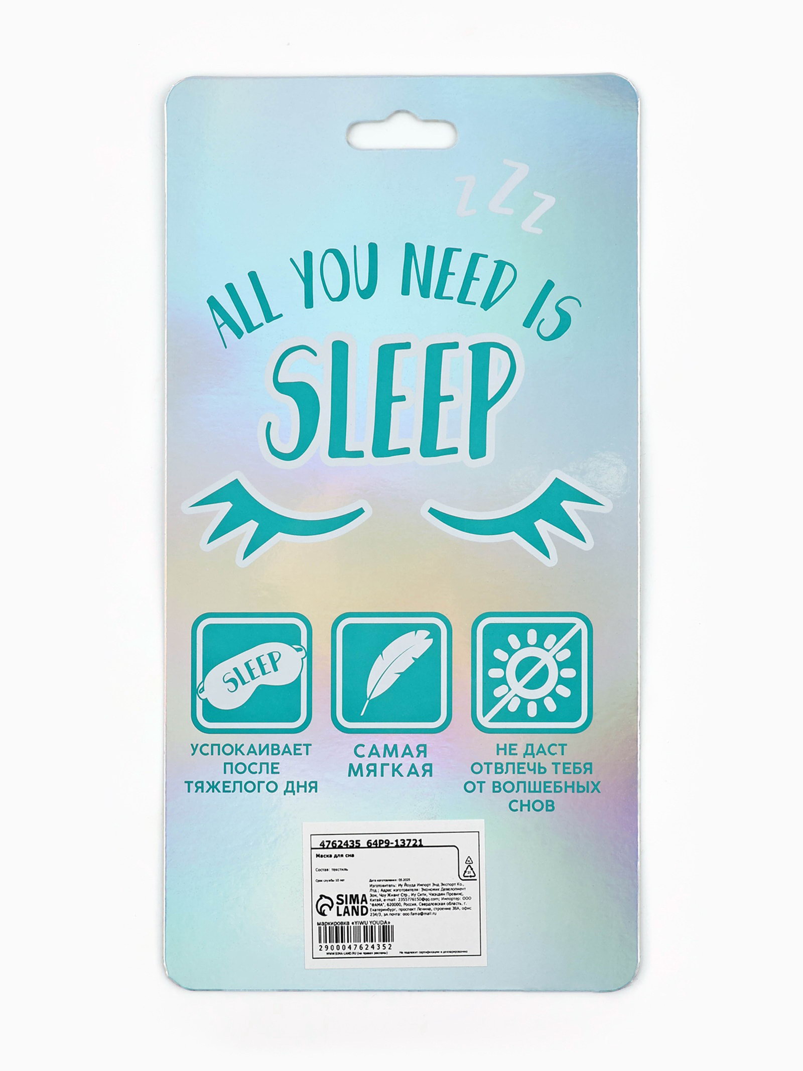 Для кого: Для девочки, Для женщины Размер упаковки: 13 x 1 x 25 см. Цвет: Серый Тематика праздника: Универсальная тематика tnved: 6307909600 tnved: 6307909600 Вид упаковки: Подложка Гелевые: Нет Рисунок: Да Запрет реализации по сегментам: 00000000534 Маска для сна - выбор в пользу крепкого и здорового сна. Преимущества: – Не пропускает свет, благодаря чему ускоряет процесс засыпания. – Эластичная, мягкая резинка не давит на голову. – Приятный материал. – Уникальный дизайн. – Отлично подойдет в качестве подарка близким. Рекомендуется ручная стирка при температуре не более 30 градусов. | ||